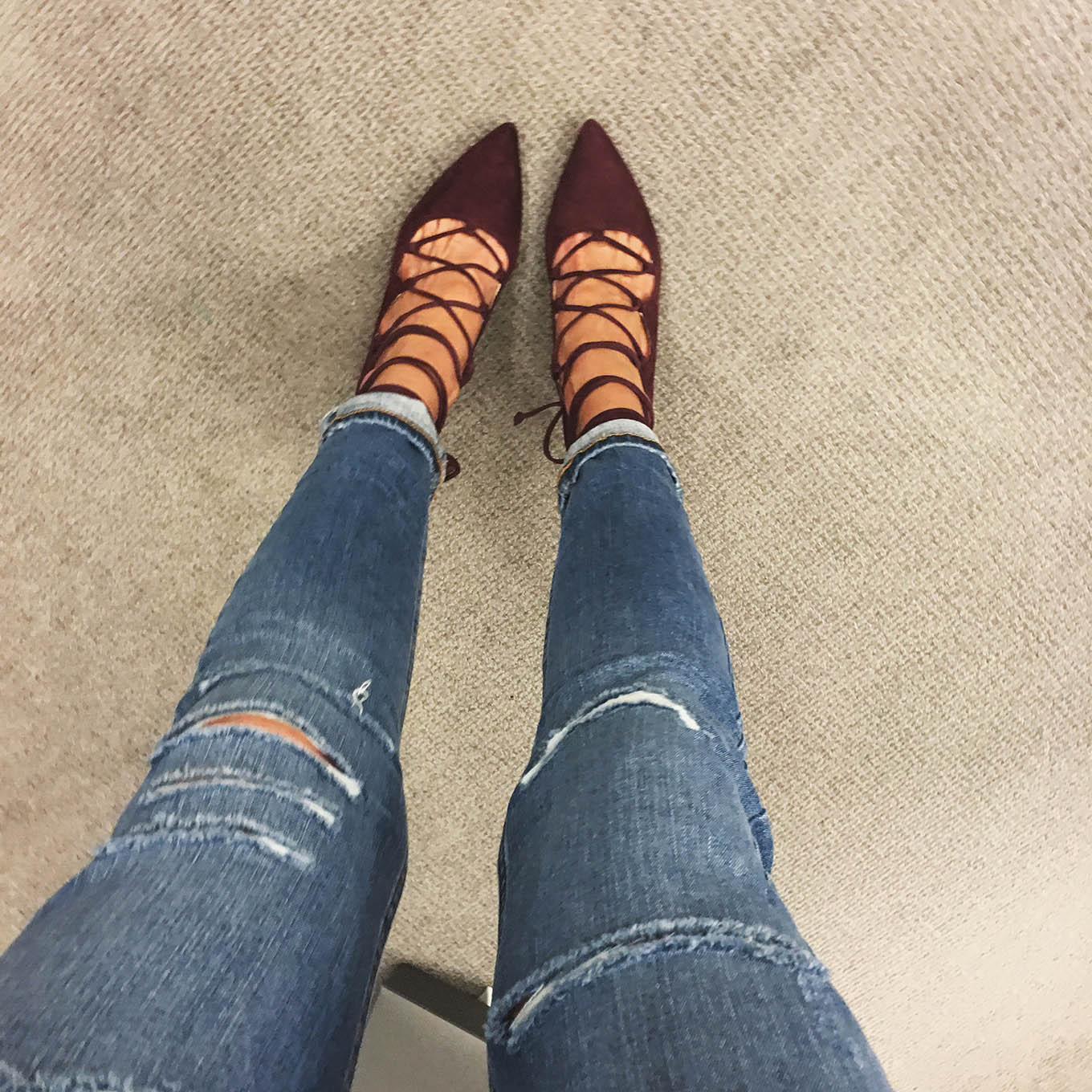 Love those burgundy lace-up pumps!!