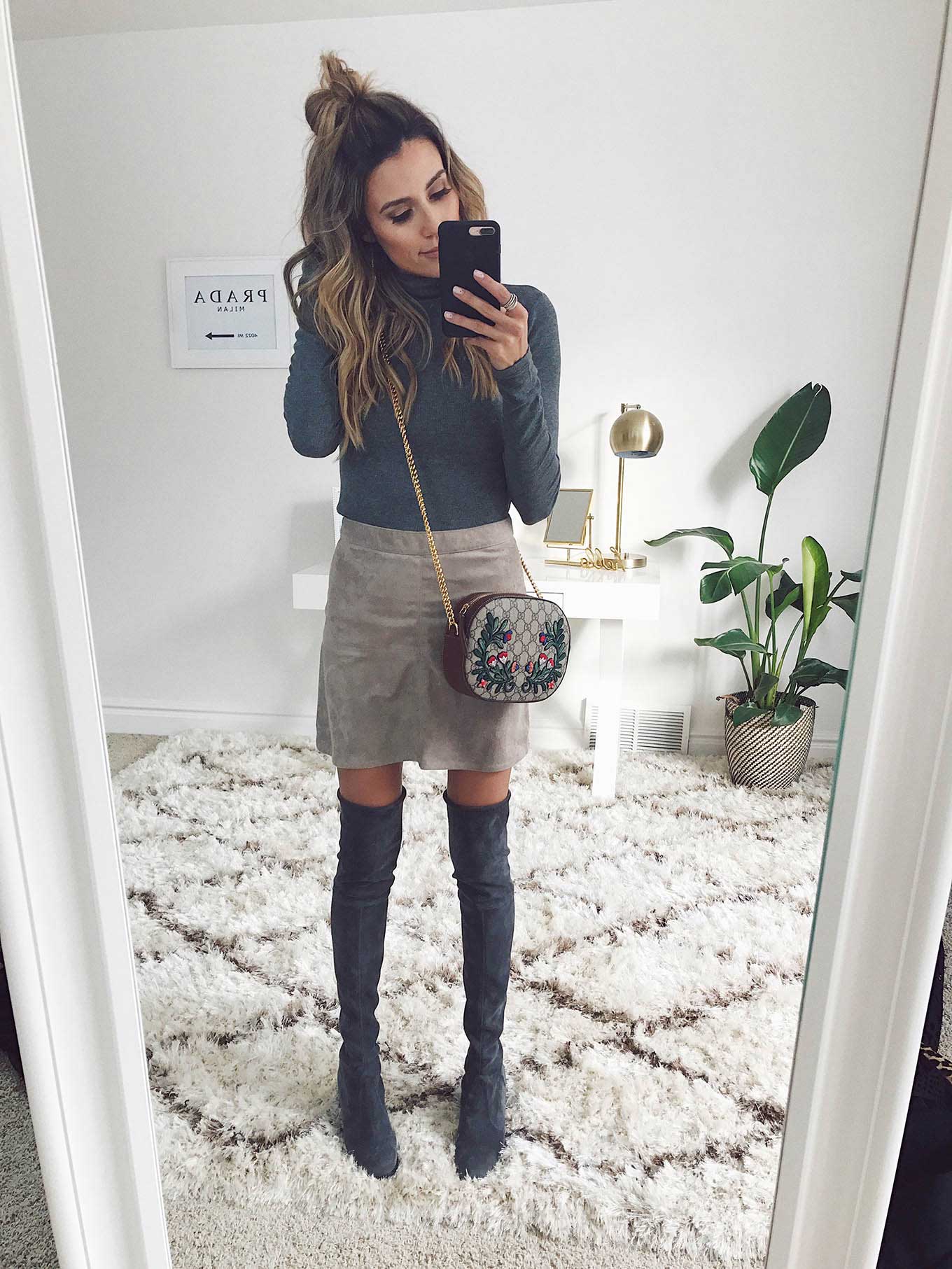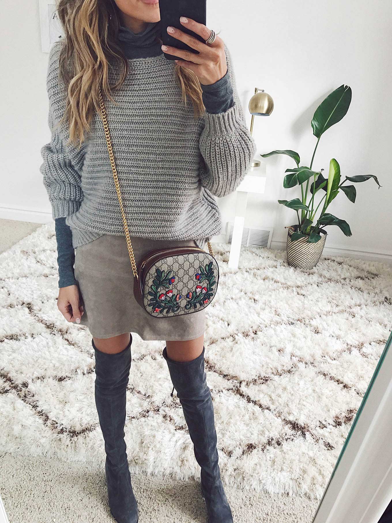 DETAILS: GREY TURTLENECK (SIMILAR HERE)| SUEDE MINI SKIRT (UNDER $100 – LOVE THIS ONE) | GREY SWEATER (OBSESSED WITH THIS ONE!) | GREY OVER-THE-KNEE BOOTS