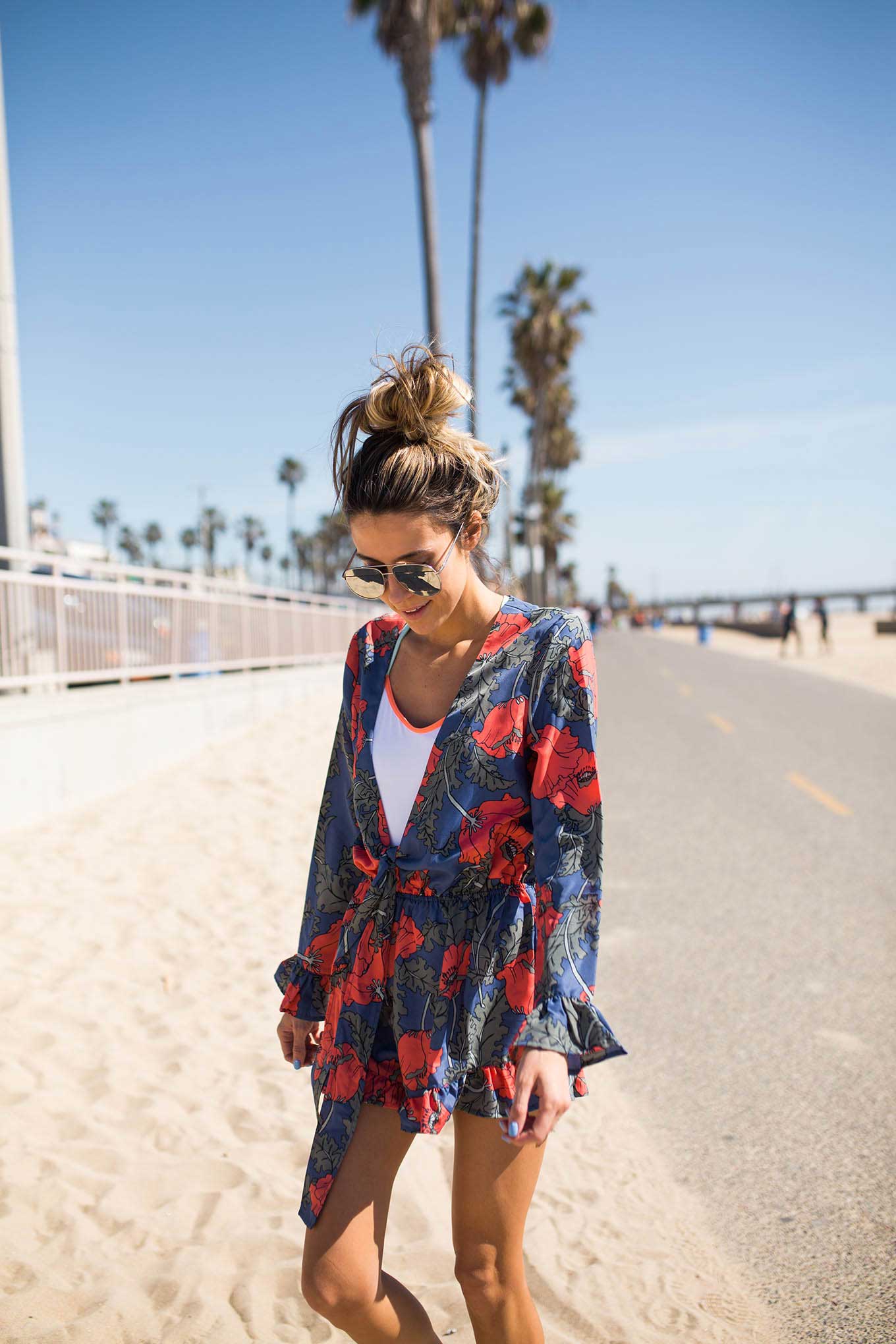 DETAILS: ONE-PIECE SWIMSUIT (ON SALE – WEARING SIZE 6) | FLORAL ROMPER (ON SALE) | AVIATORS