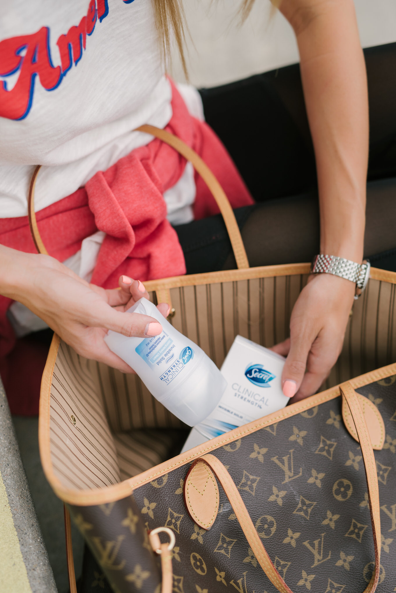 For work mode, it’s all about neutrals and a cute pair of heels. I love crisp clean white – it’s one of my favorite colors to wear! Utah summers are crazy hot and don’t always lend themselves to wearing light colors, since hot weather often equals sweat breakthrough. I don’t like sacrificing my favorite colors just because of the heat, so I keep my deodorant in my bag or car. Secret Clinical Strength Deodorant has 2x the sweat protection of a normal antiperspirant, so I can get away with wearing those delicate fabrics or light tops and not have to worry about them surviving those 100Β° days.