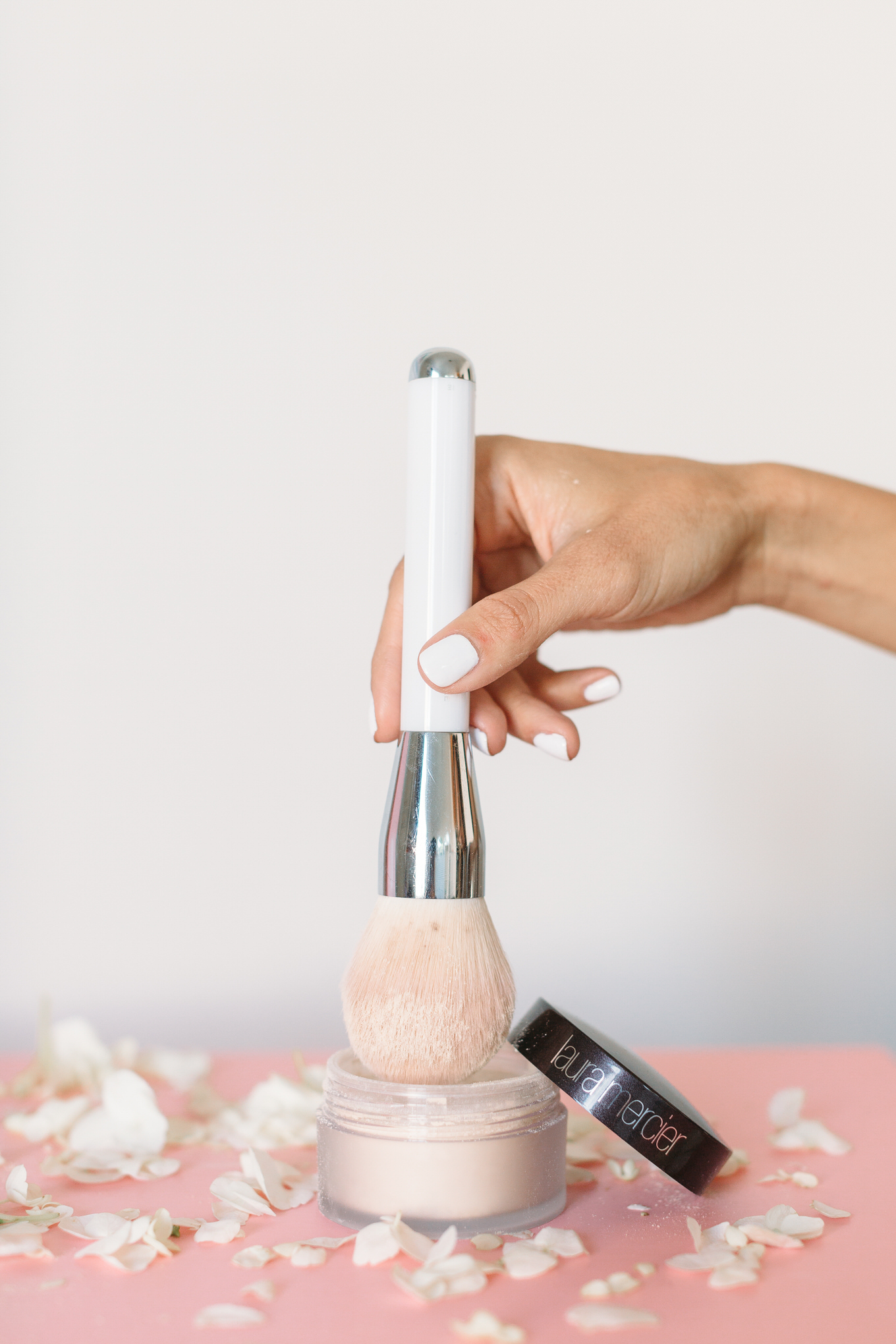 4. Setting Powder: Layering a setting powder over your liquid foundation or tinted moisturizer helps it set and stay in place. I’m super picky with my powders because I hate that thick makeup look, but this one blends really well and is really light and translucent. Use your fluffiest brush to swirl, tap off excess powder, and apply to your cheeks, mid-forehead, nose, and chin.