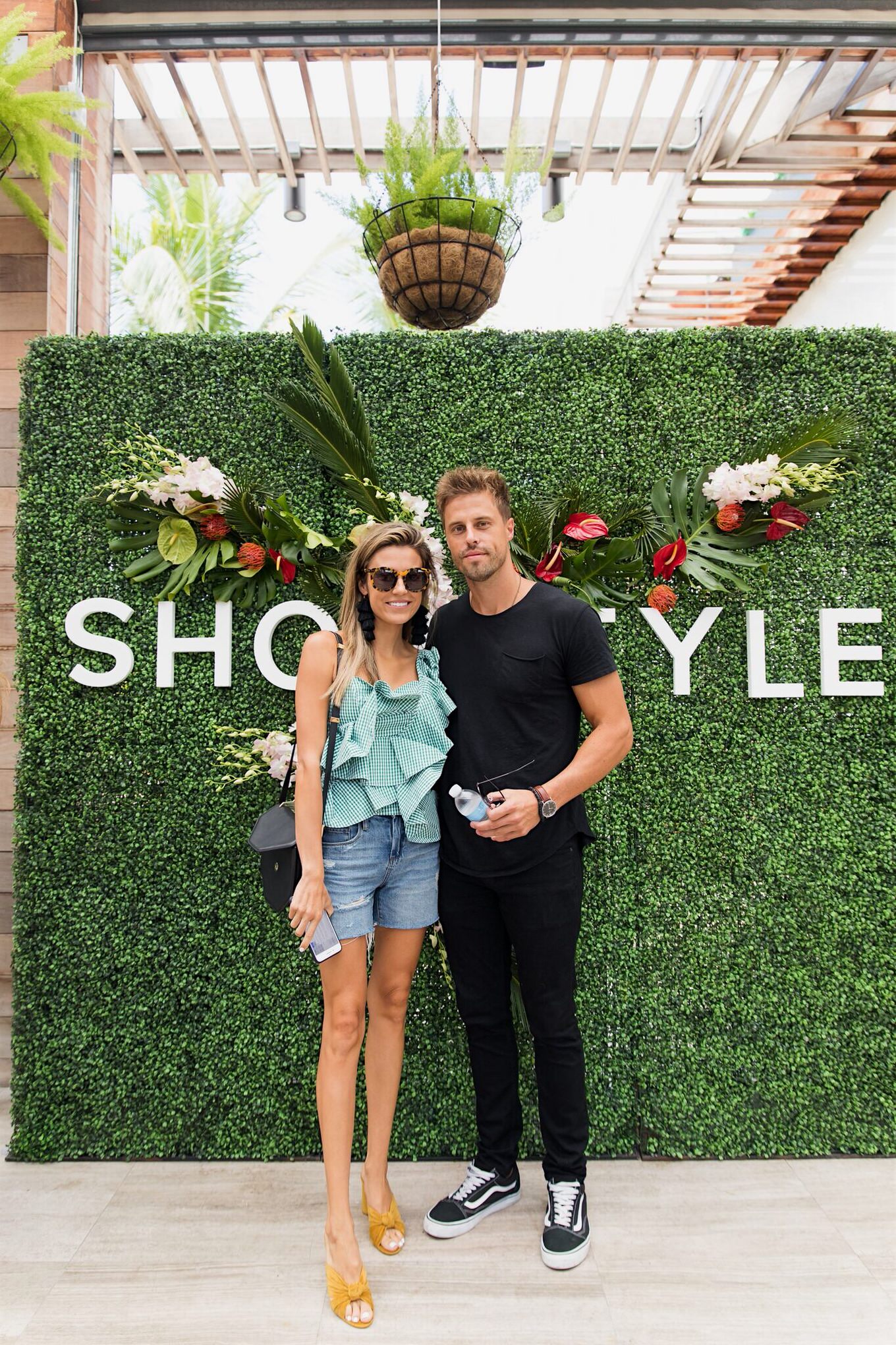 Happy Monday! Cody and I went to Miami for a day and a half for a fun event with Shopstyle. It’s always fun when we have a second to ourselves (I always really miss the kids but loved having this one on one time with Cody). It was a super short trip but so fun! Shopstyle put on this really cute brunch the morning before the game and I wore this pretty gingham top. Between the ruffle detail, the one shoulder silhouette, and the gingham print it’s like a match made in heaven. It comes in 3 colors and is under $100! These shorts are super versatile too – I wore them to the game at night too. You can cuff them up or wear then down (on sale under $75).