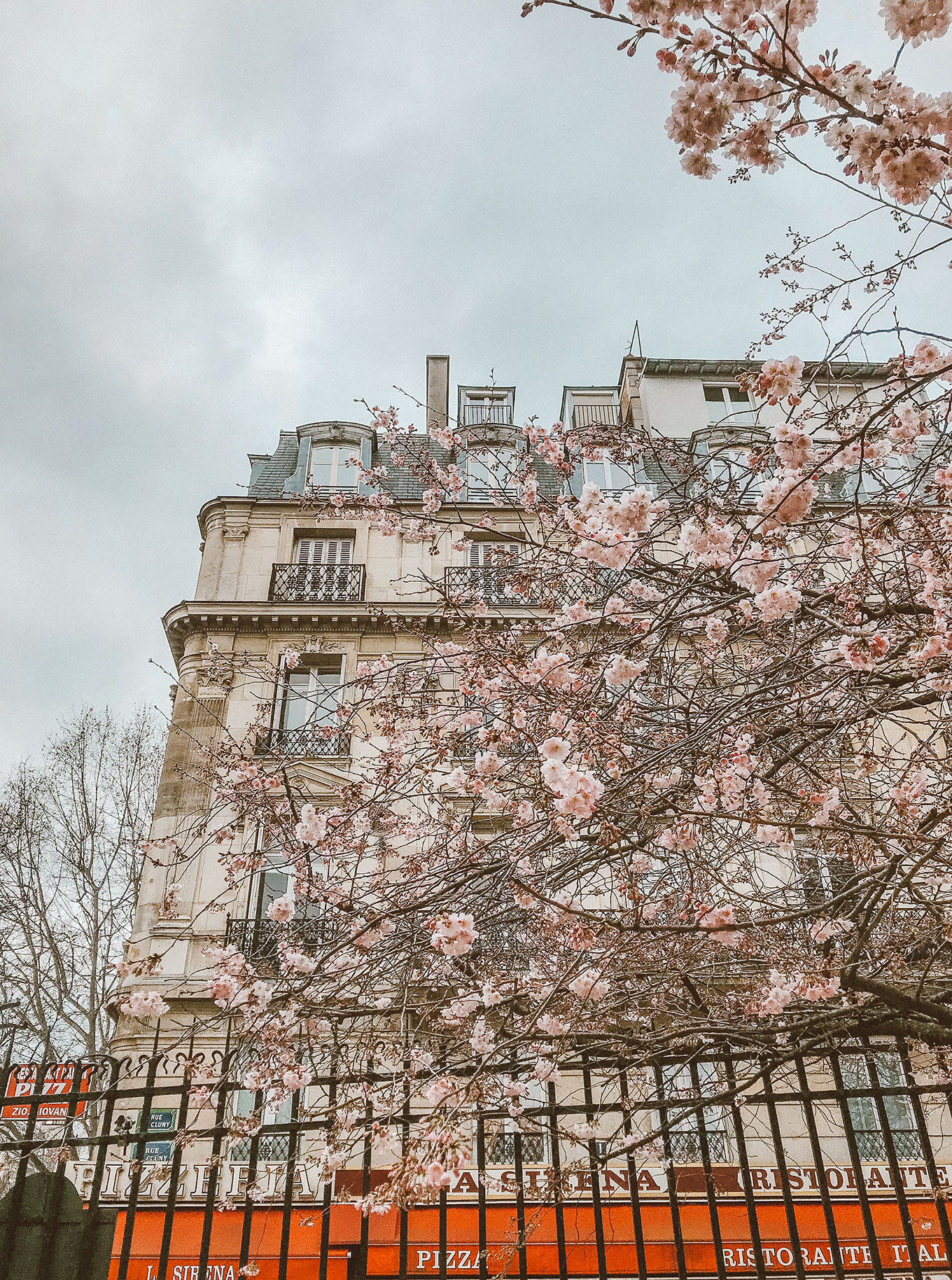 Sacre Coeur: We just randomly ended up at the Sacre Coeur one night and it had such a pretty view of the city, I was so glad we did it! We didn’t get there in time to climb the steps up to the dome for the best view, but it was still a beautiful view from the peak of the Montmartre neighborhood. On the way down there was a street vendor selling hot apple cider and hot mulled wine – so good! On our walk I found the only cherry blossoms in Paris I think hahah jk I’m sure there was more somewhere but I was so excited to find one tree with some beautiful blooms!
