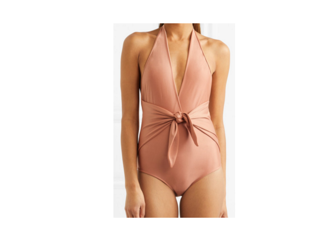 A classic halter with an updated twist, this dusty rose swimsuit has that statement effect in the prettiest shade that will make any tan look 10x better.