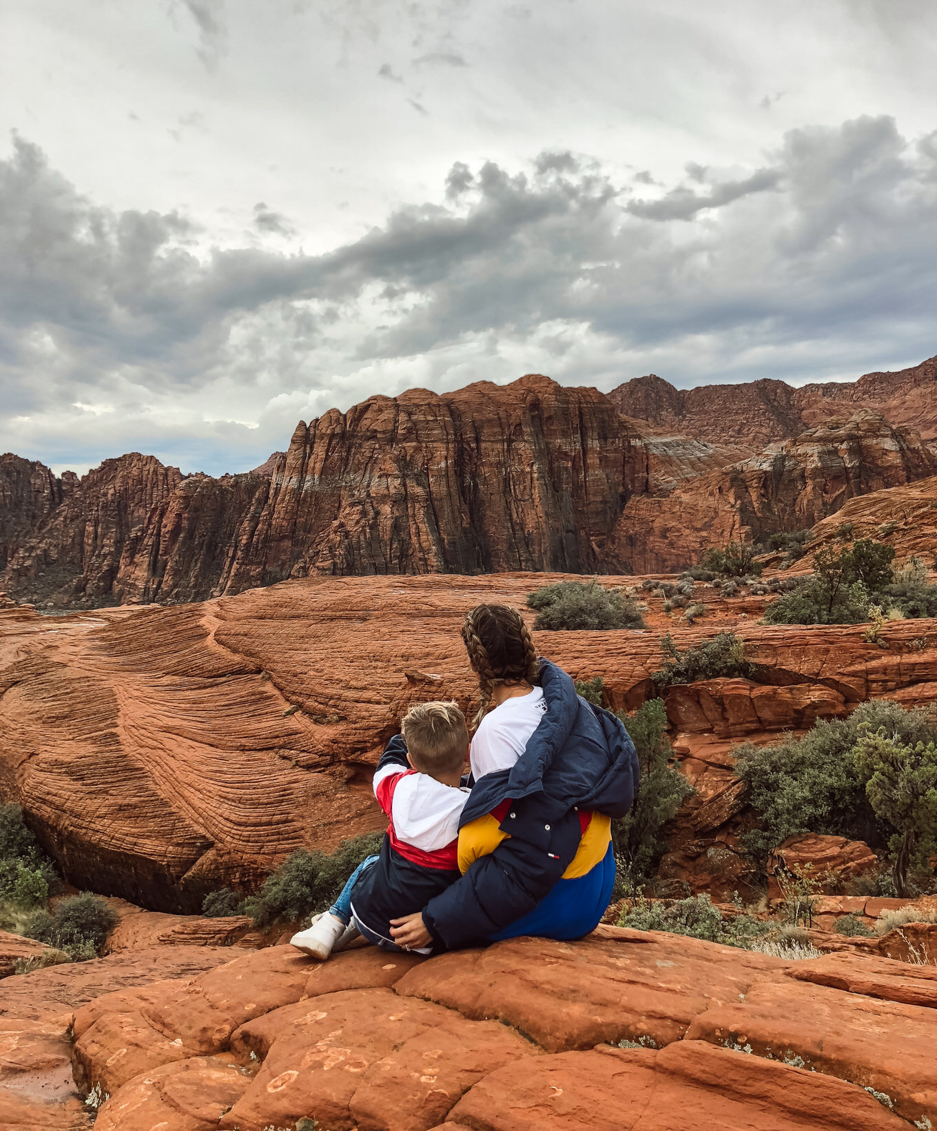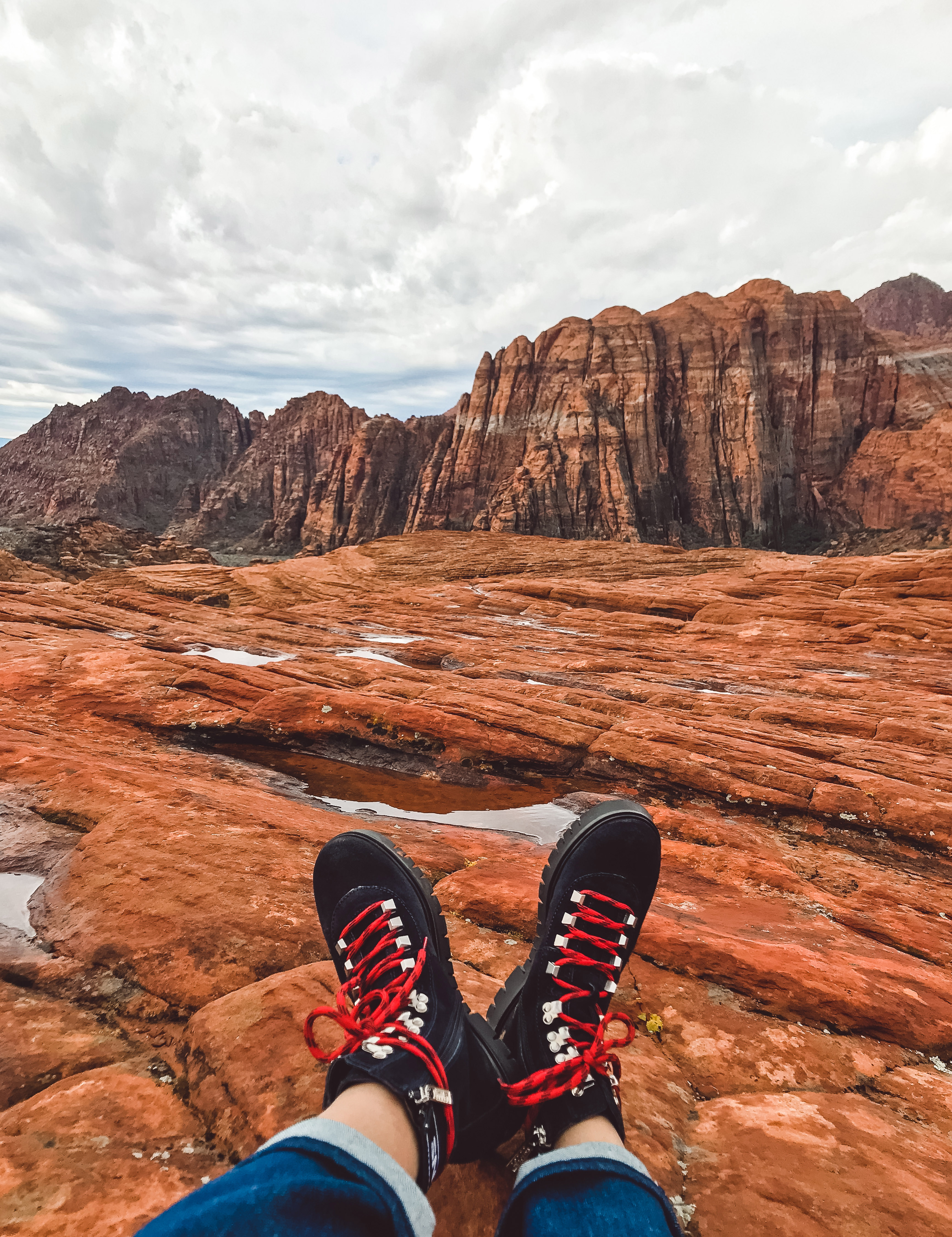 I have been dying to go back to the red rock and mountains for a road trip. We went a couple years ago and it was so hot and miserable to hike so this time around it was perfect weather for exploring. We had the best time exploring with Cody’s family…we hiked and climbed and went through caves and these cute hiking boots definitely came in handy! 😉