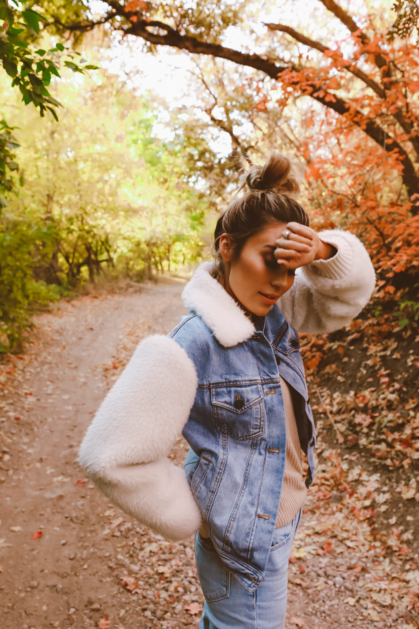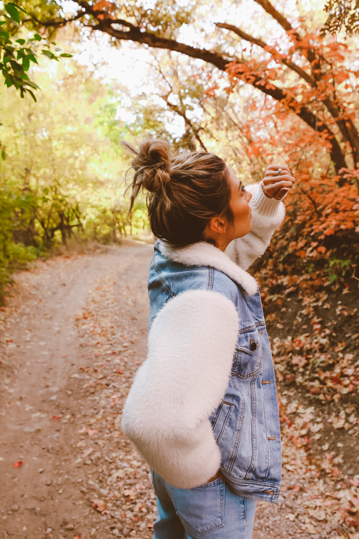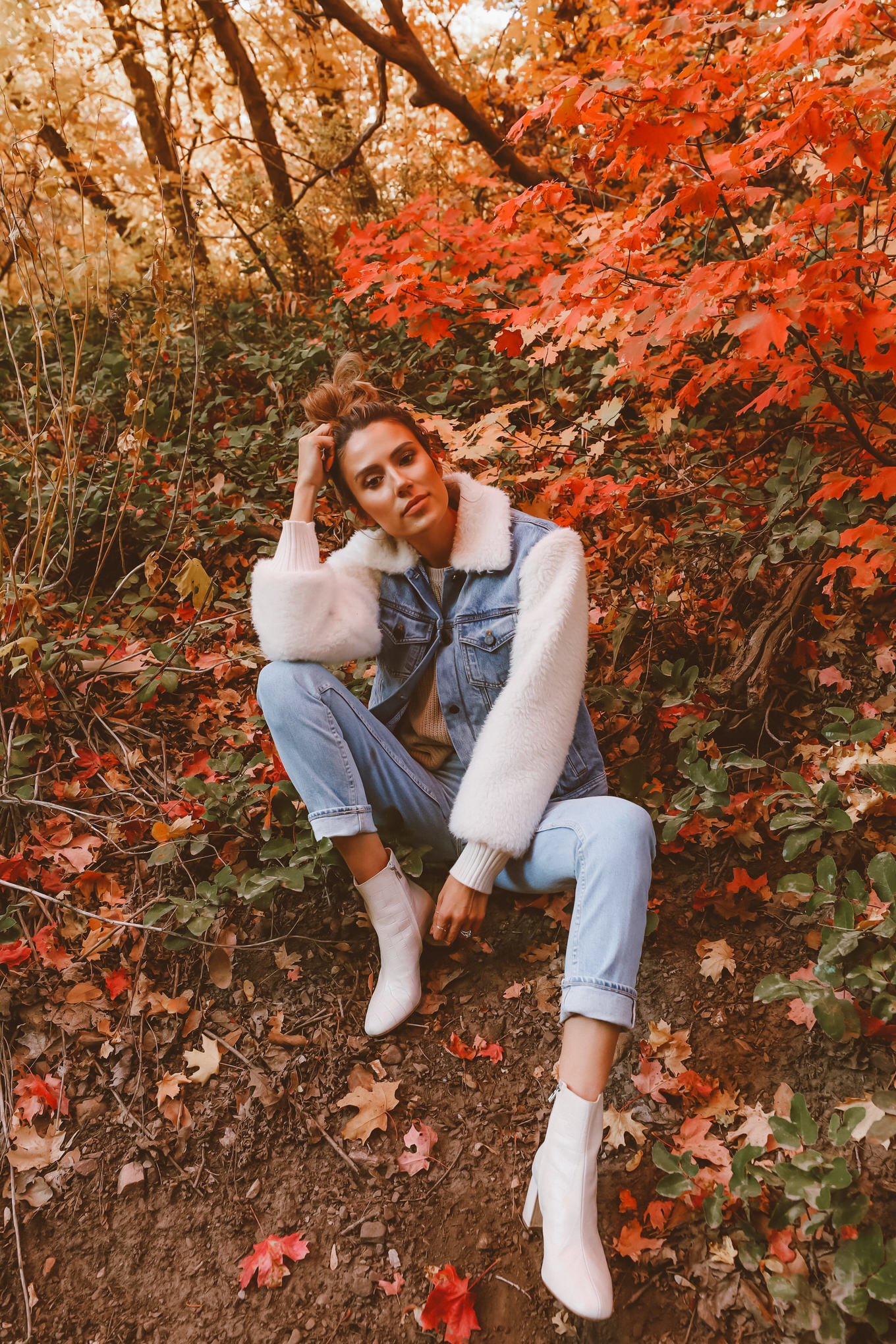 October is finally here!!! My favorite time of the year for so many reasons.  In Utah the trees are the prettiest colors ever! We go on drives through the mountains for no reason, with no destination in mind. Cody got a new old school car that can go up in the mountains, or on rough trails so we went up the canyon and found the most gorgeous trails and trees. The temperature is finally not too warm, we get to pull out all of the cozy sweaters (yay for #sweaterweather!!) and boots I picked out this jean jacket that I am obsessed with – I love that it isn’t the basic jean jacket and has the faux fur sleeves and collar. It goes perfectly with my favorite new white boots!  This amazing sweater will also be on repeat…it’s seriously so so soft.