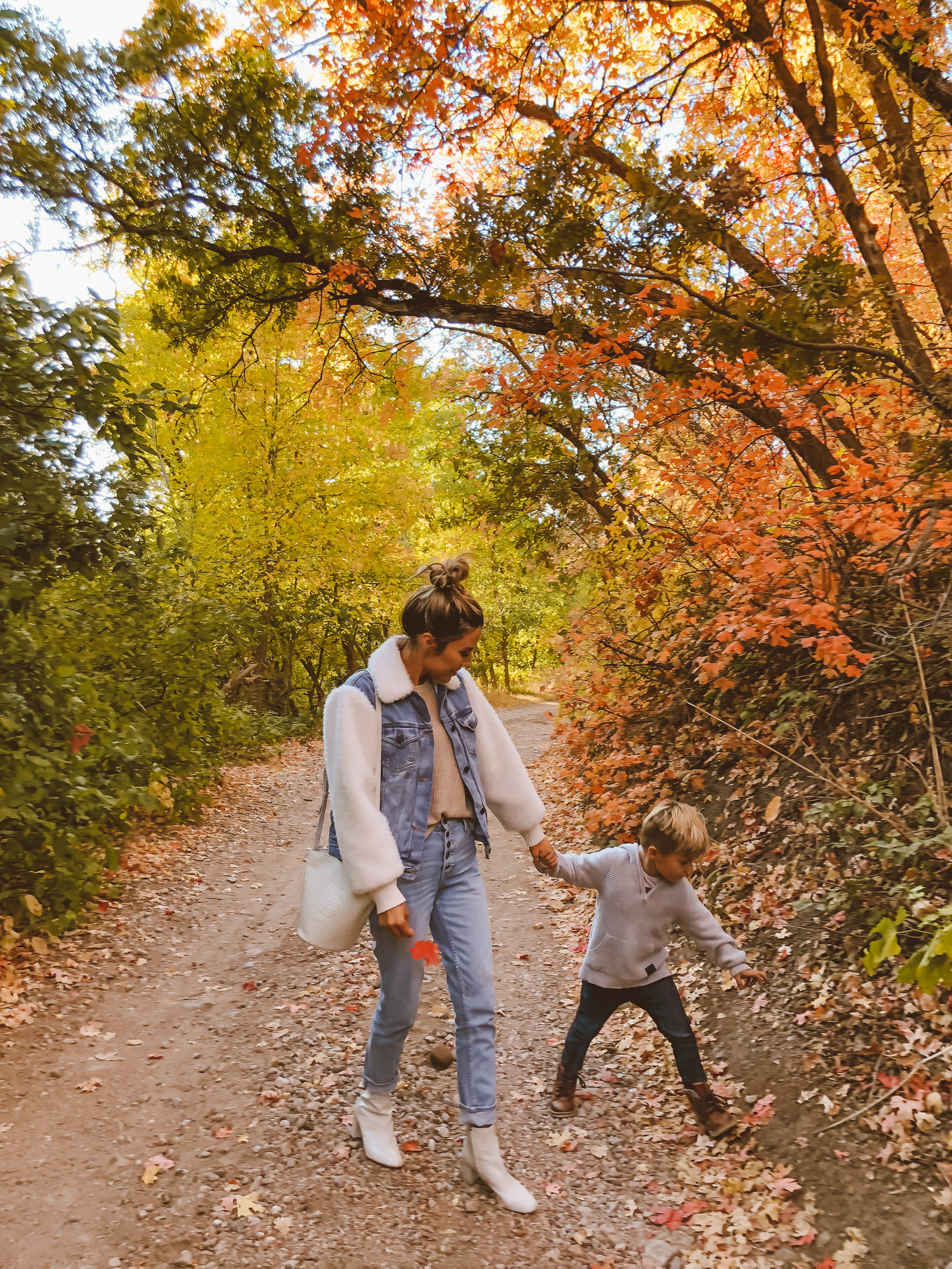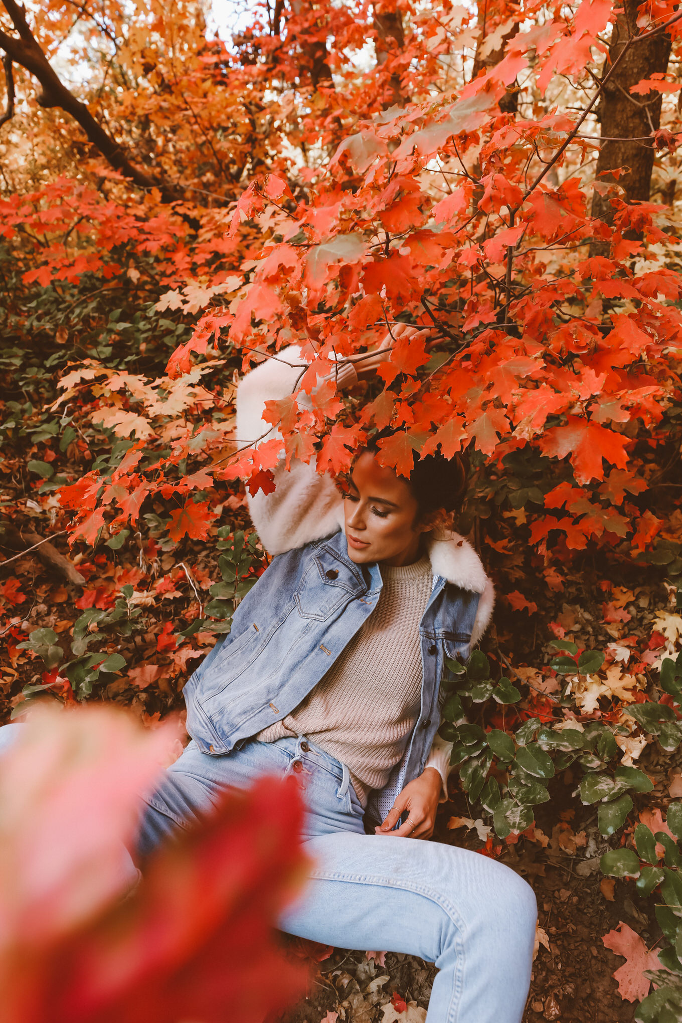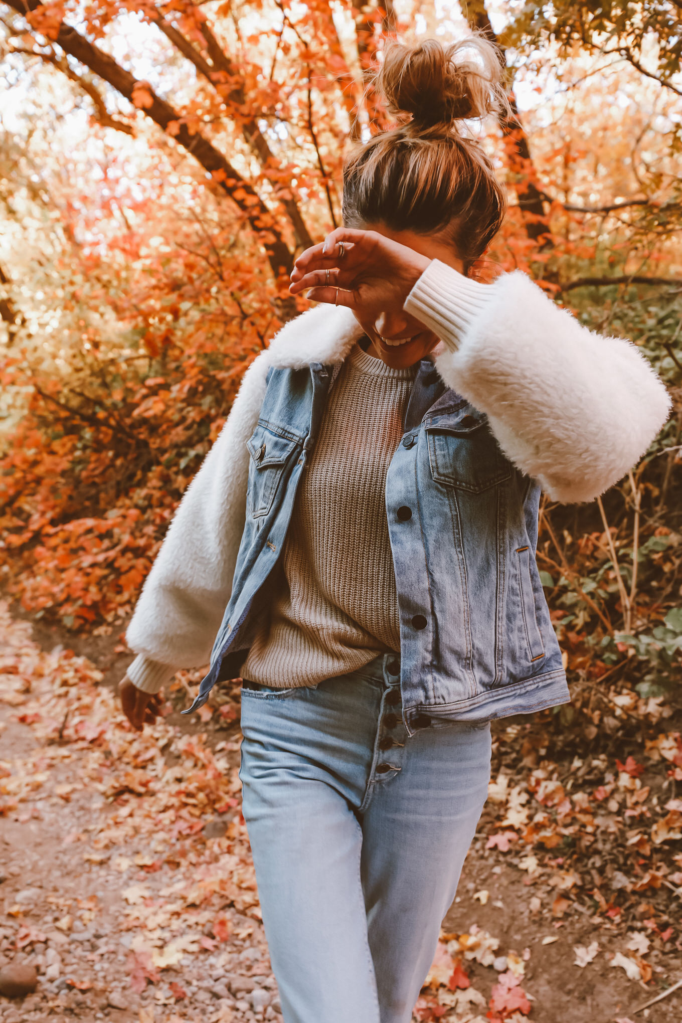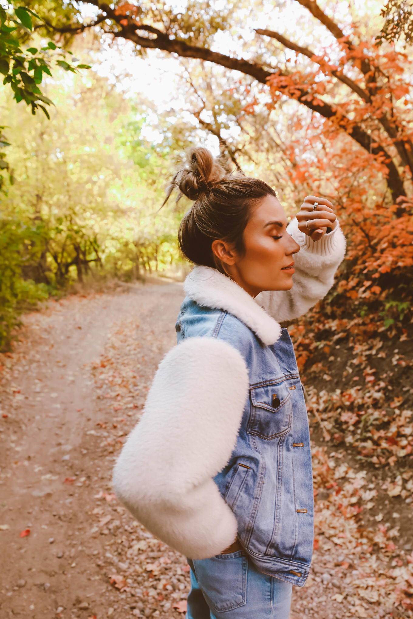 October is finally here!!! My favorite time of the year for so many reasons.  In Utah the trees are the prettiest colors ever! We go on drives through the mountains for no reason, with no destination in mind. Cody got a new old school car that can go up in the mountains, or on rough trails so we went up the canyon and found the most gorgeous trails and trees. The temperature is finally not too warm, we get to pull out all of the cozy sweaters (yay for #sweaterweather!!) and boots I picked out this jean jacket that I am obsessed with – I love that it isn’t the basic jean jacket and has the faux fur sleeves and collar. It goes perfectly with my favorite new white boots!  This amazing sweater will also be on repeat…it’s seriously so so soft.