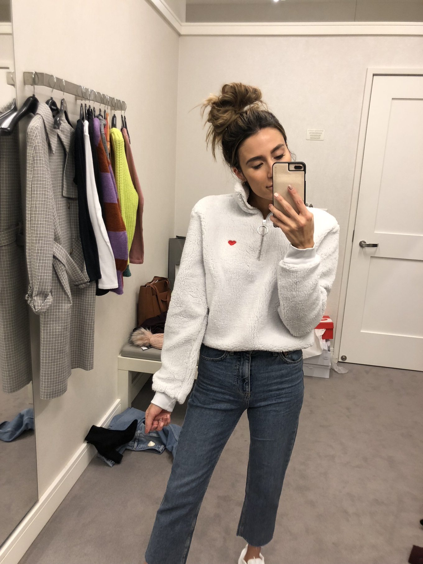 You guys know I loved this fuzzy pullover I recently got in tan – I was wearing it so much I had to get it in grey too!