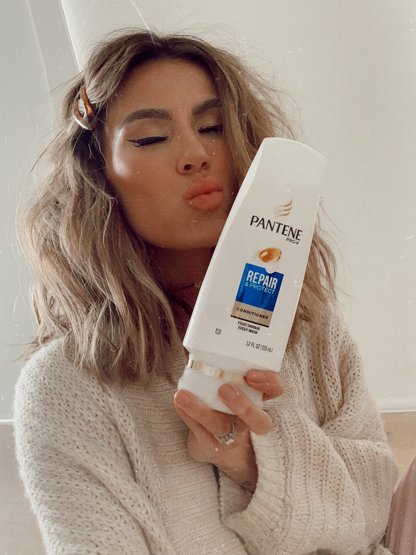 I typically wash my hair 2 times a week. I like to go a couple days between – second day curls are the best right 😉 I used the Pantene Repair & Protect Shampoo and Conditioner to add some moisture and shine to my hair. For the conditioner I use about a quarter size and brush it through my ends about half way from my scalp and down. I keep a wet brush or wide tooth comb in the shower and this also helps with tugging on my hair creating more breakage when I get out of the shower.