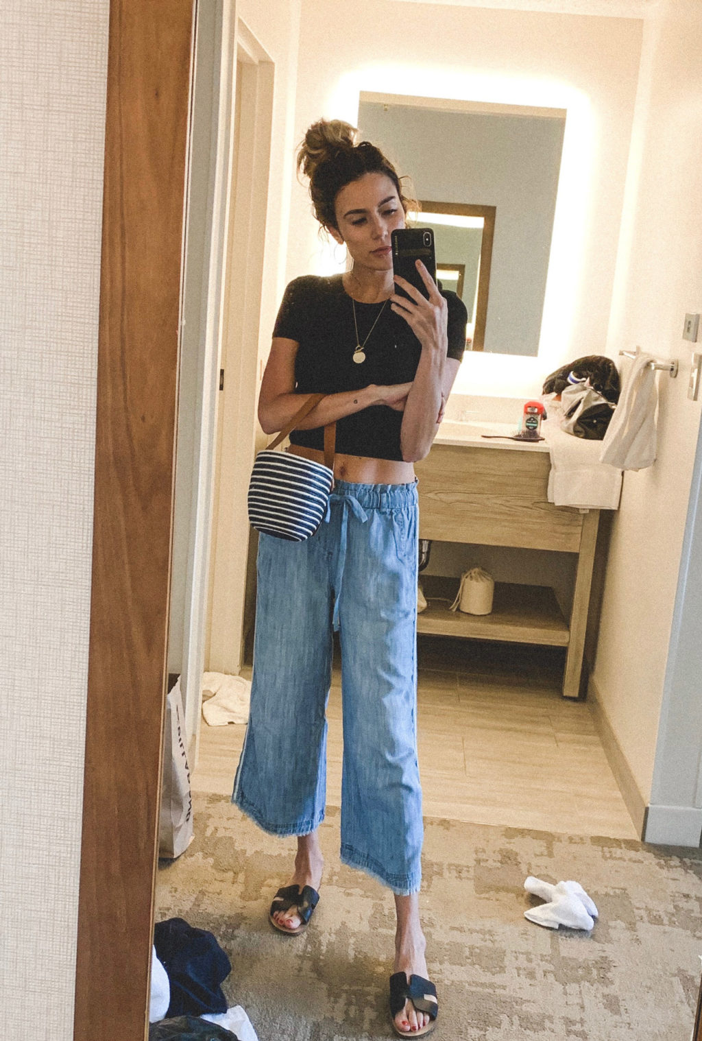 DETAILS: DENIM WIDE LEG PANTS (20-25% OFF WITH CODE EVENT19) | BLACK CROPPED TEE (SIMILAR HERE)