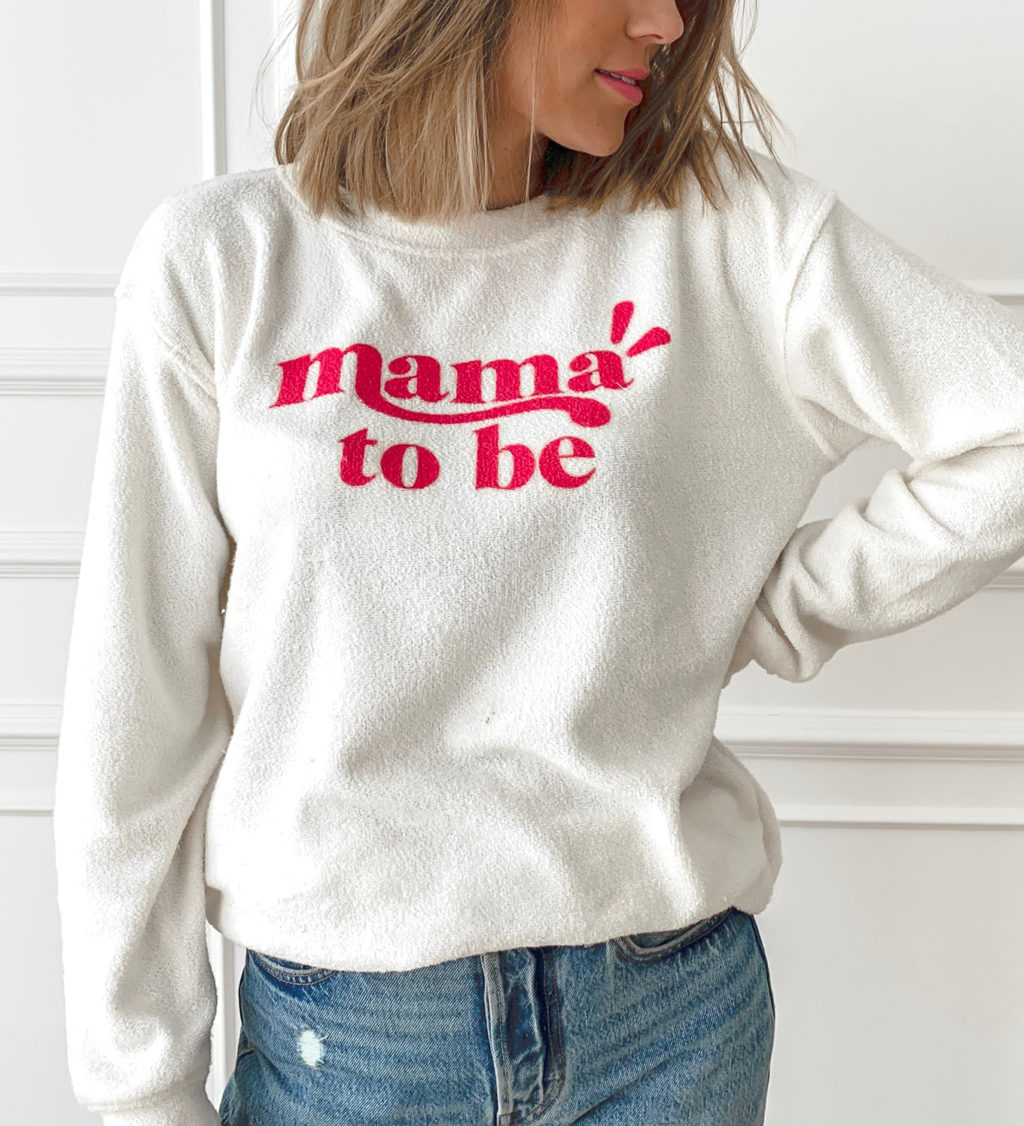 Those of you who have been following me for a long time know how all of life’s special moments have inspired new designs, and finding out I was finally pregnant got me so excited to create some new pieces, like our Mama To Be sweatshirt. You know how much I wear my comfy sweatshirts, so I found the softest french terry sweatshirt to share with those fellow maternity mamas. π