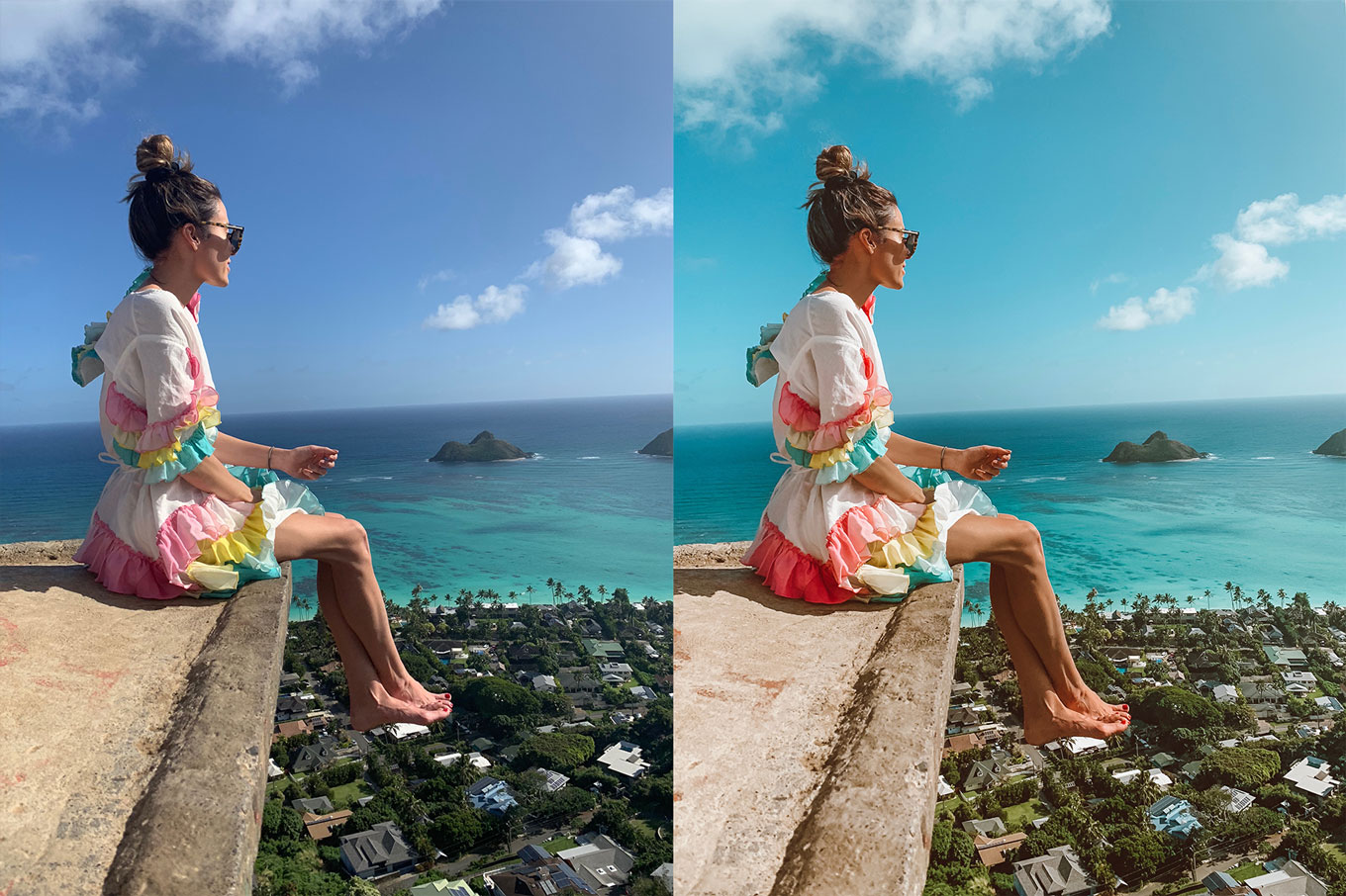 Hey hey! We launched this preset pack during our last trip to Hawaii and it is my go to edit for all our summer beach pics. I always get tons of questions on how I edit my travel pics, so I wanted to put together a blog post showing you some before and after’s with our Hawaii Preset Pack (on sale). I use these mobile presets for all of our beach trips. Scroll down to see some before and after shots and which presets I used for each.