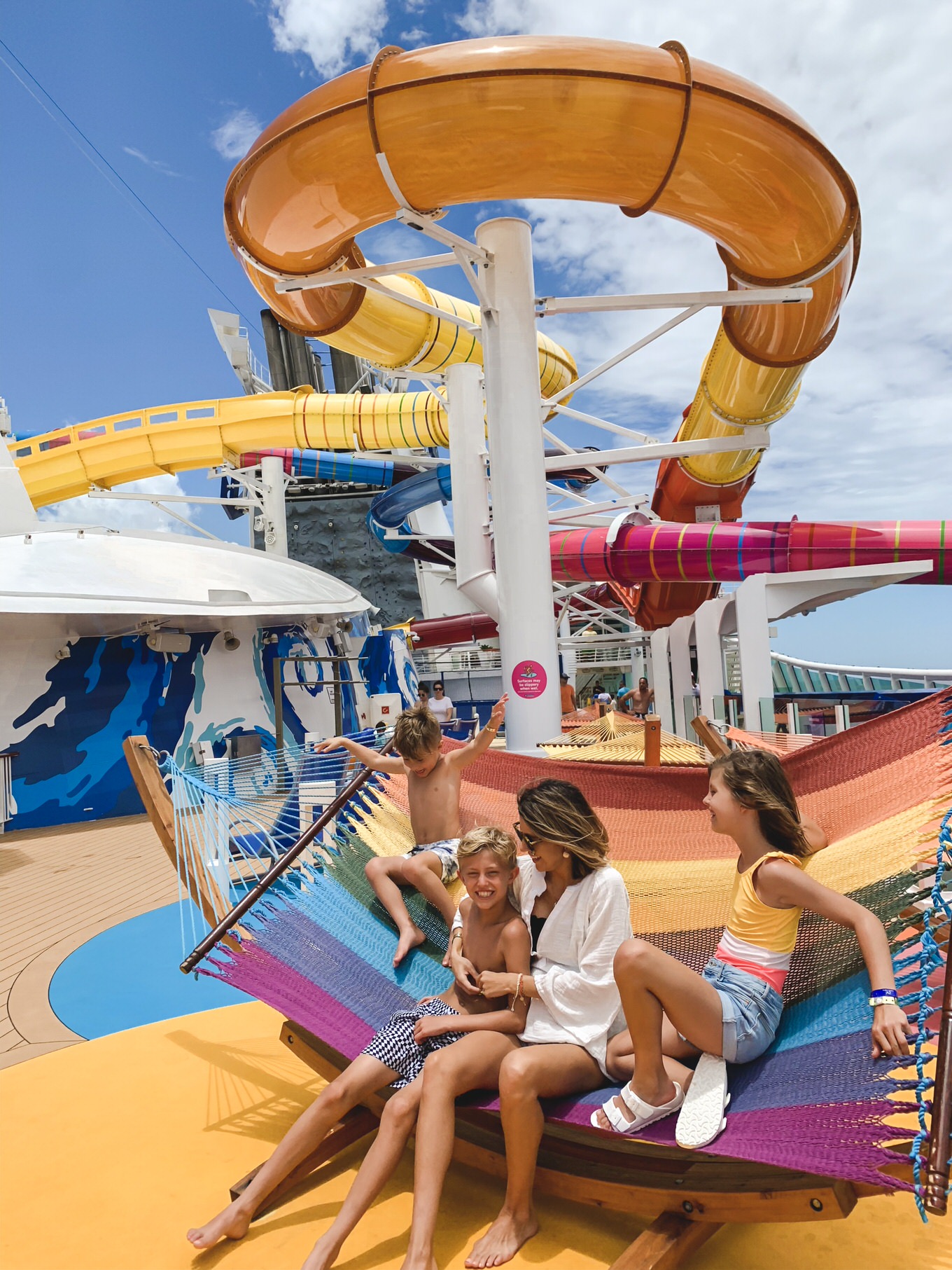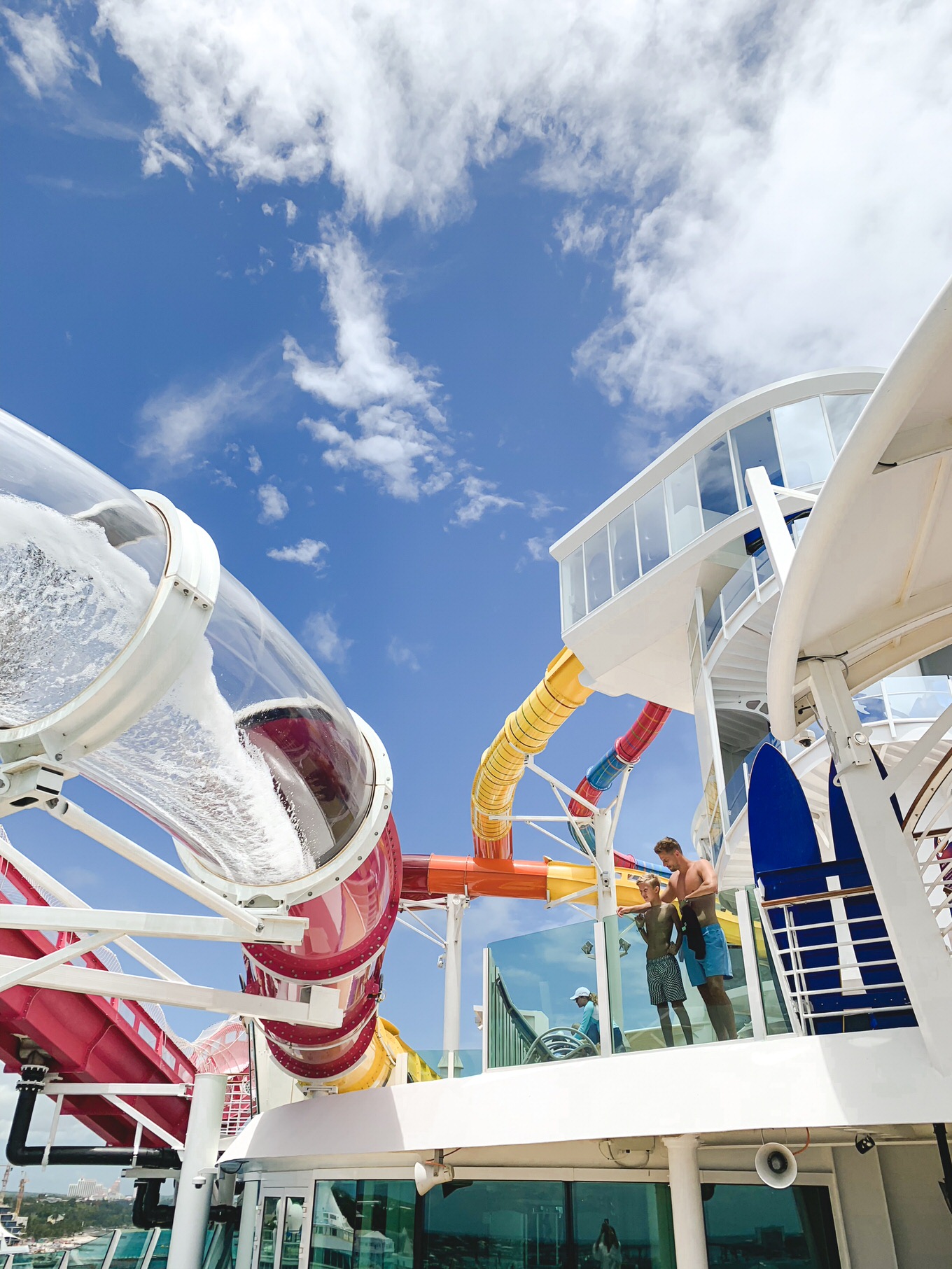 Royal Caribbean has so many amazing destinations to choose from, but our day at Perfect Day at CocoCay, Bahamas, the first in their new Perfect Day collection of private island destinations, was probably our favorite stop yet! Honestly, I could put together a whole post just on the island – there was so much to do! It’s the perfect destination for families who have different speeds or interests (or both :). Cody and the kids are really adventurous, so they got their thrill with the helium balloon, Up, Up & Away (which gives you the highest view in all of the Bahamas!), Thrill Waterpark (which has 13 slides, including the tallest water slide in all of North America), and a 1,600 foot long zip line — did not disappoint. Then, over on the other side of the island is the most beautiful beach, Chill Island, where you can lounge and relax. The water is warm, super clear and a gorgeous color and when the tide is right, you can walk out really far (a couple hundred yards). We even found star-fish on the beach, which was a huge hit. There were also tons of great food options on the island. I could go on forever, but Perfect Day at CocoCay really had something for everyone in the family, and all in close proximity so you don’t lose any precious daylight going back and forth between different activities.