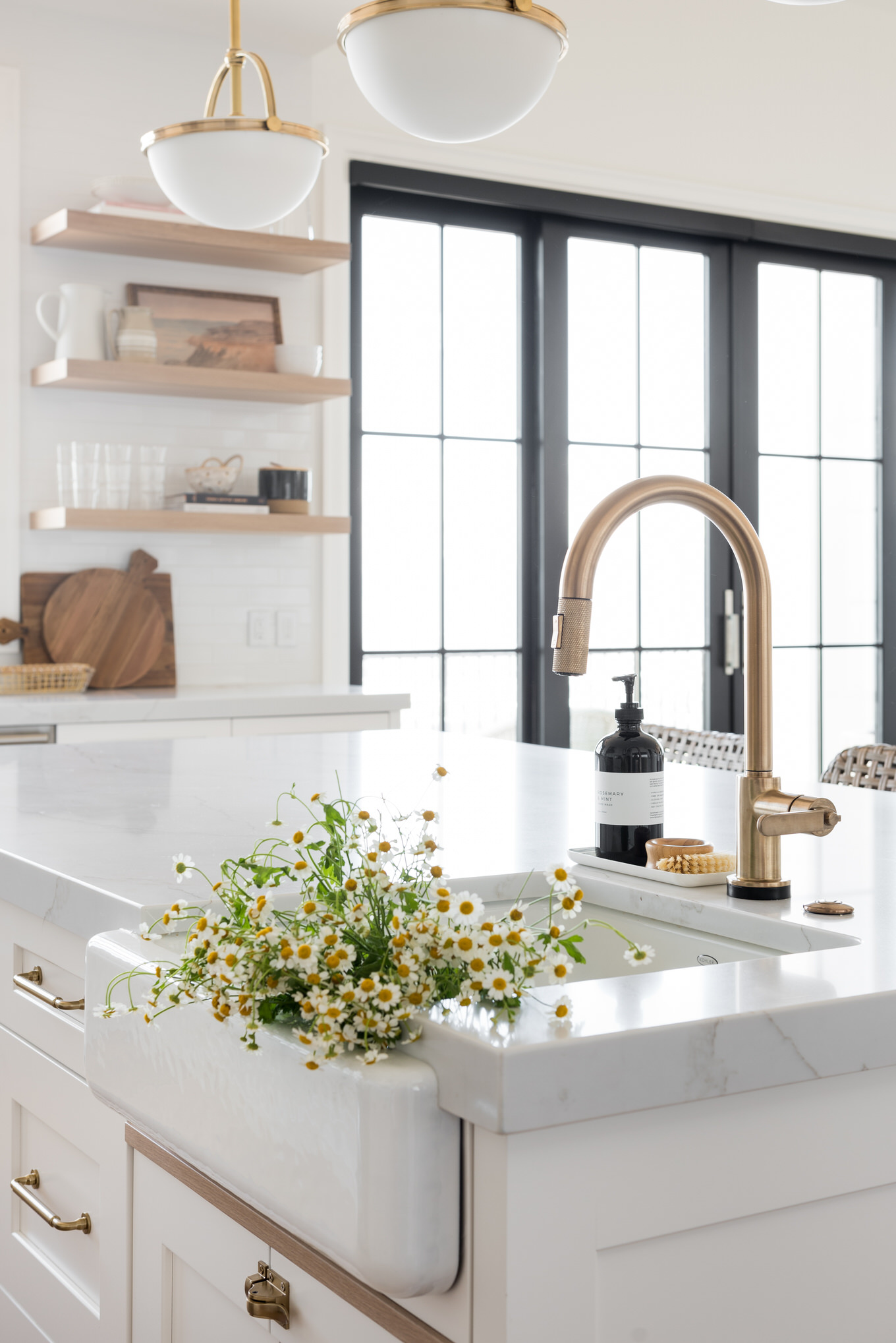 You know you are officially and adult when you get excited about a pretty kitchen faucet. We got these beautiful brass pieces from Brizo – this one for the counter and this one for the island. The island one actually has a touch feature where you can turn it on and off just touching the spout! It’s pretty cool! I loved how sleek and timeless the shape of both them are. Slightly modern but still traditional for our home. We also used them in our bathrooms and seriously they have so many gorgeous options that I had a hard time choosing. If you guys are looking for new finishes, you have to check out Brizo’s options.