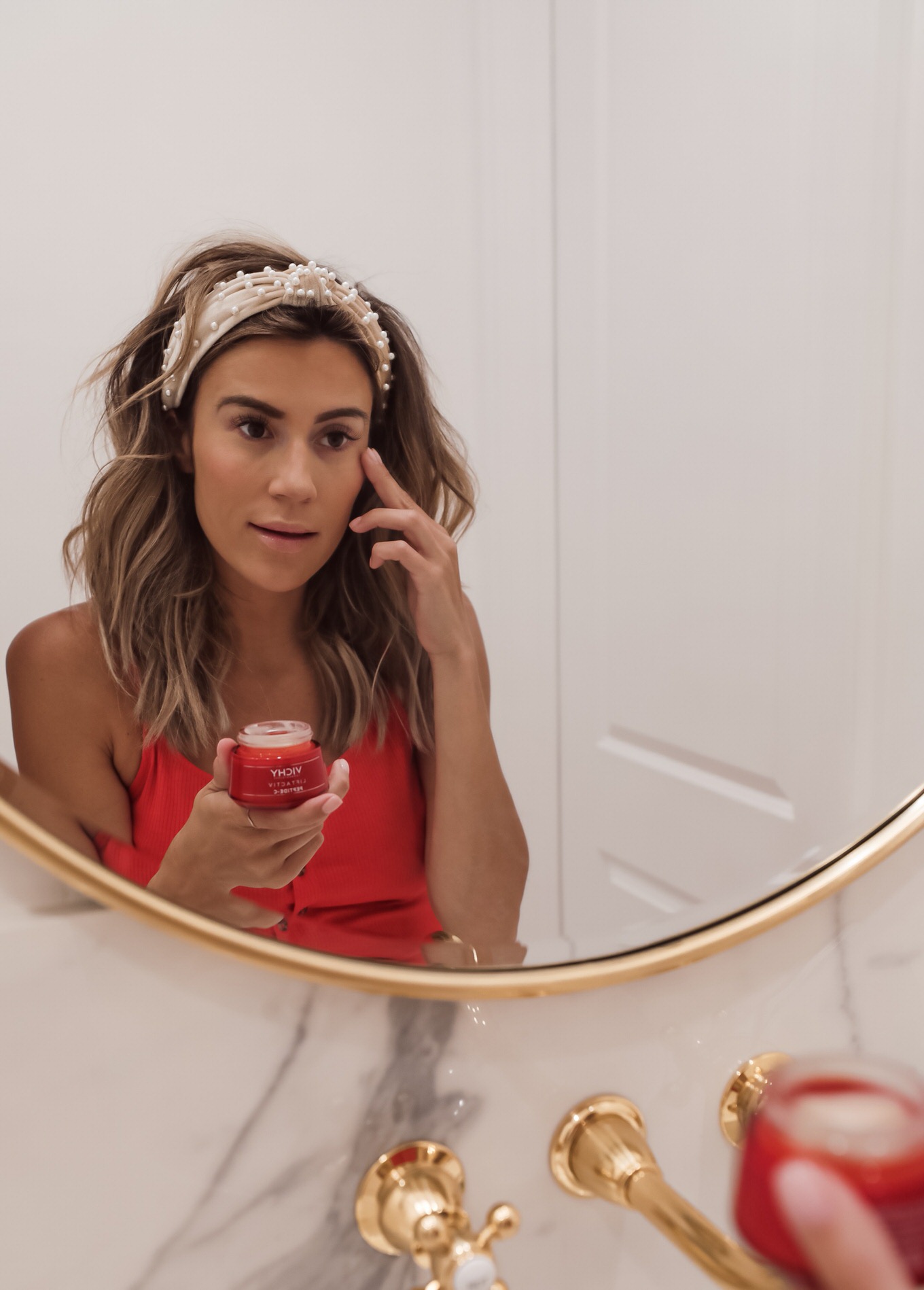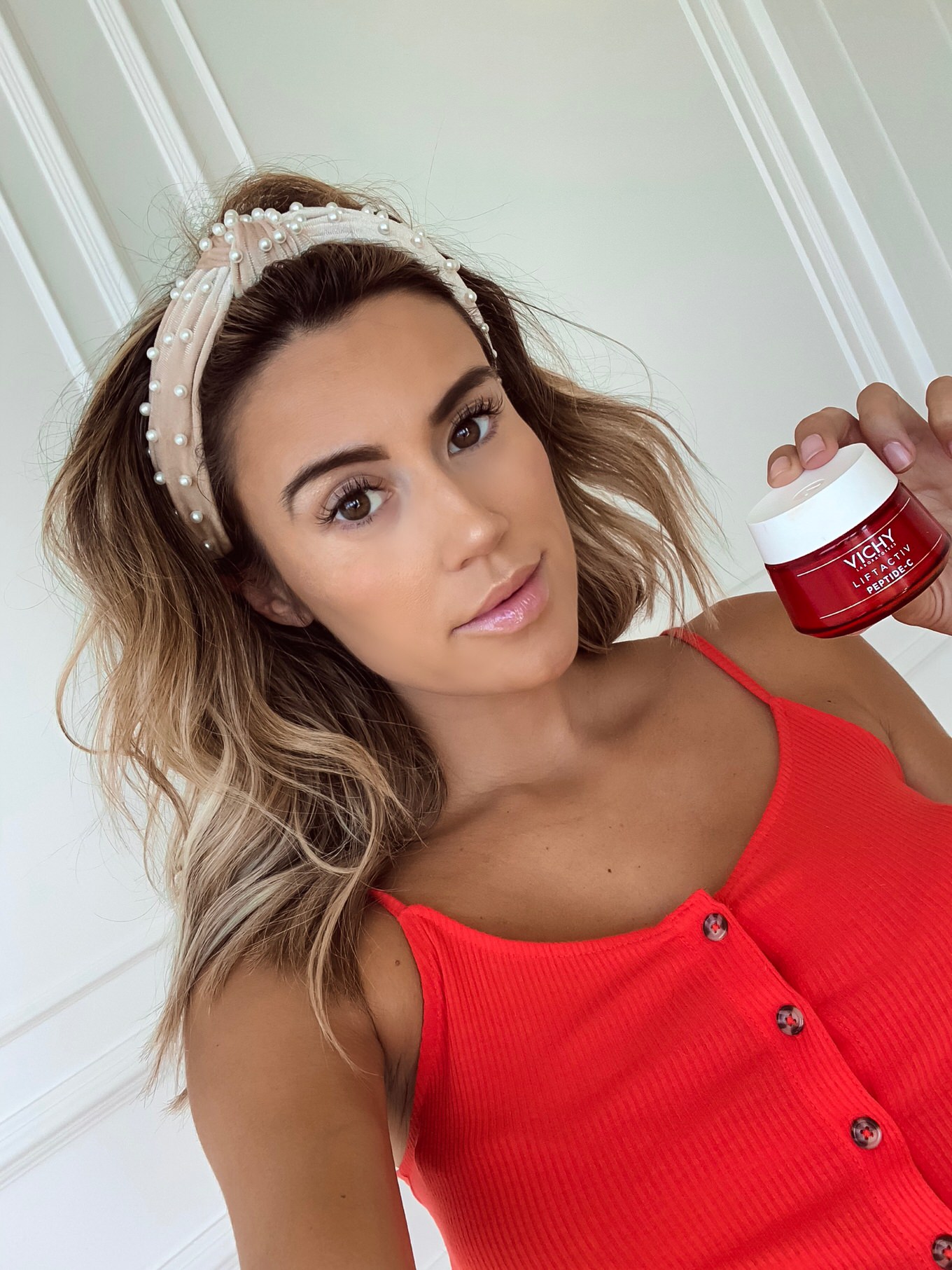 christine andrew red dress vichy liftactive peptide c antiaging moisturizer