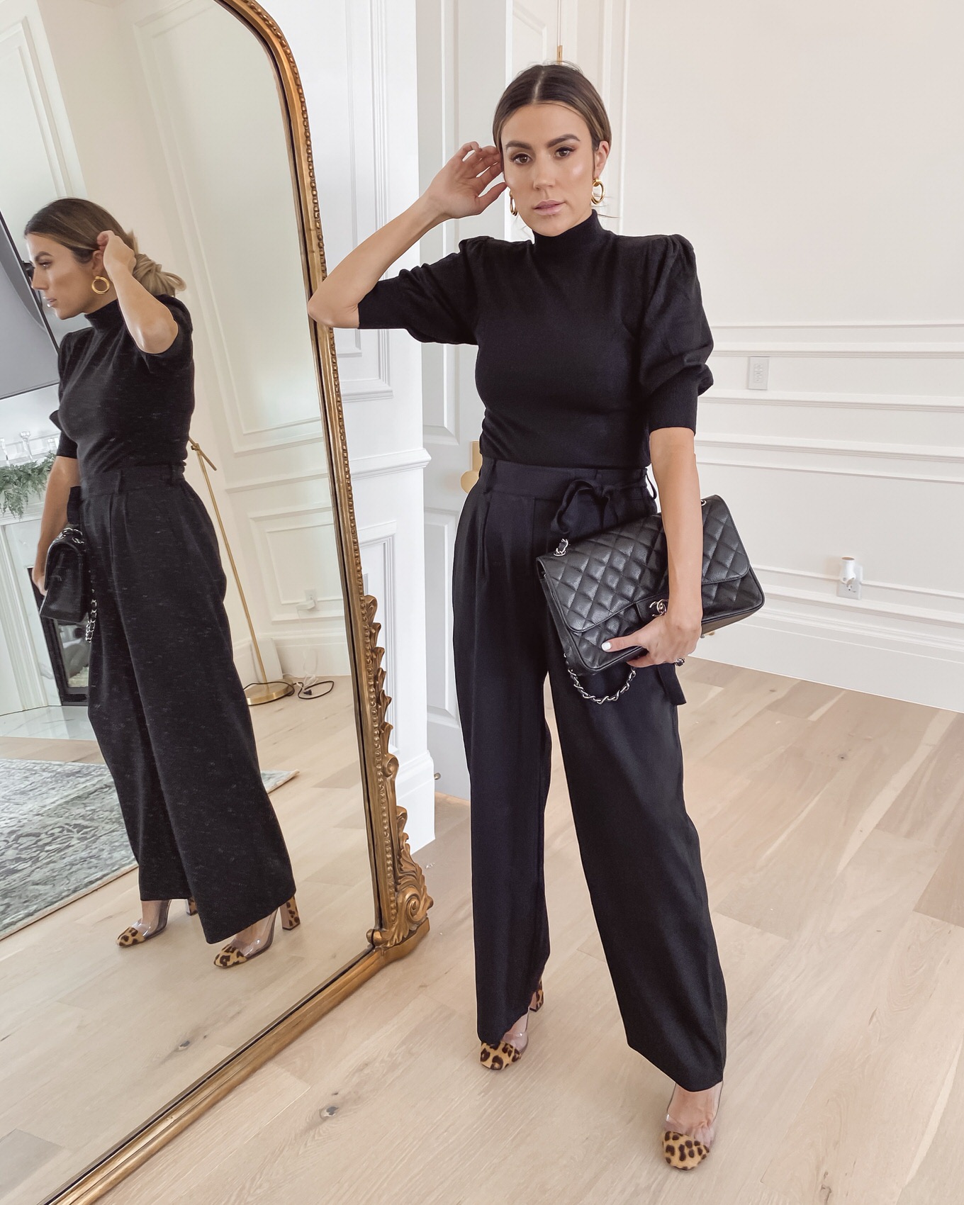 DETAILS: BALLOON SLEEVE SWEATER | BLACK WIDE LEG TROUSERS