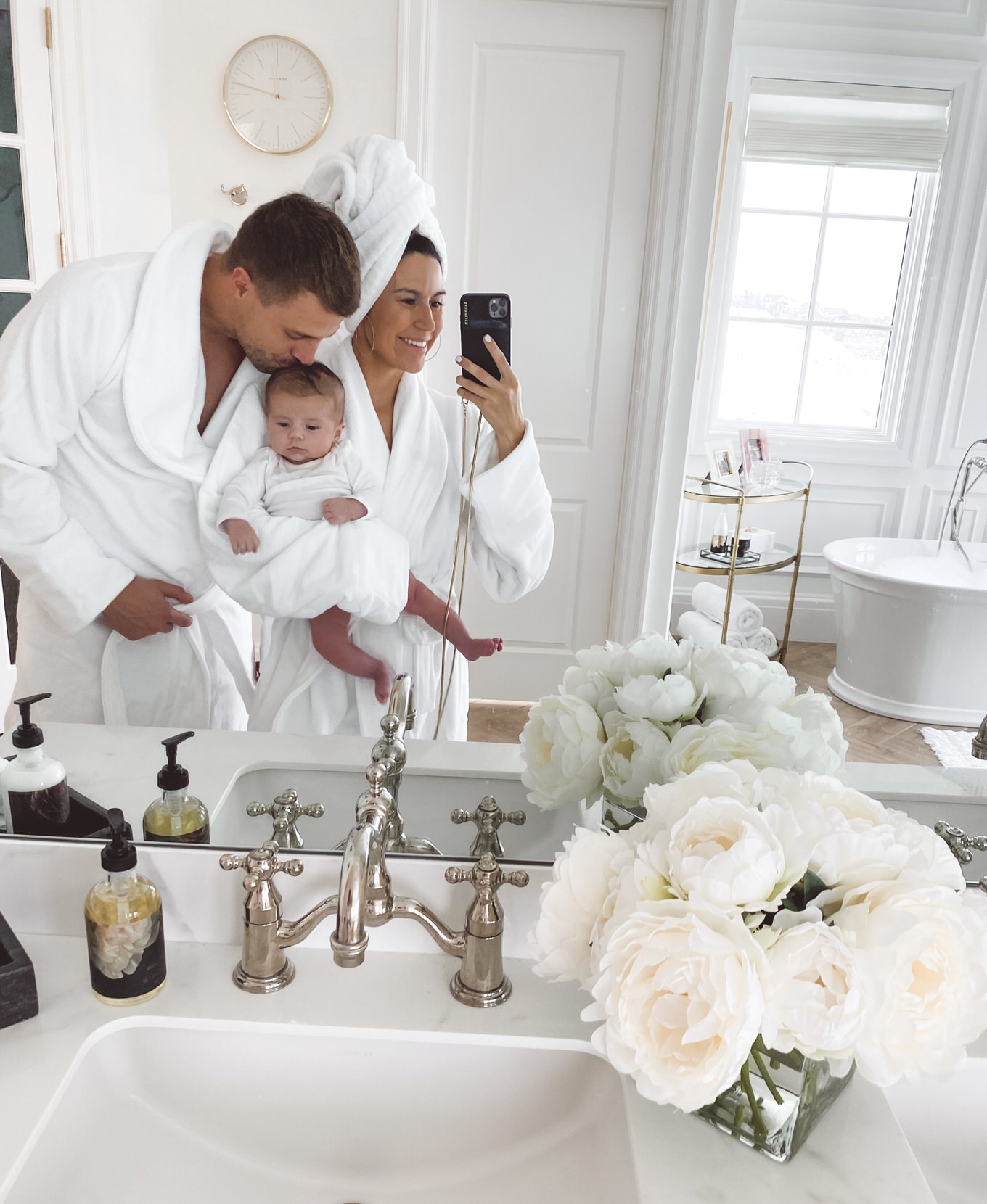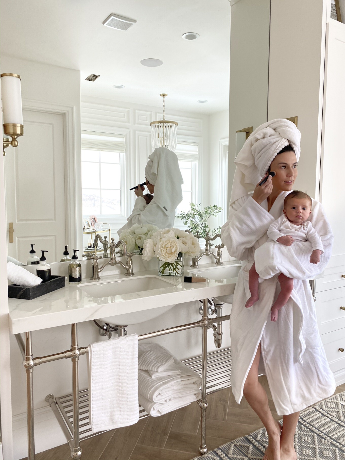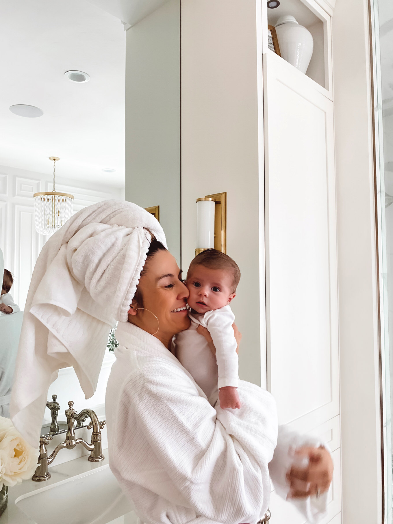 1. First and foremost, nice towels! I feel like this one is a progression, when you start with a regular bath towel you don’t know what you’re missing, but gradually as you invest in softer, plusher, and thicker towels you realize you can never go back. There’s nothing better than a feeling of a soft, new towel after taking bath in the winter (try throwing it in the dryer so it’s warm when you get out too and it’s a double win). I just added these Kohler towels to our bathroom. Our tub is Kohler and I’m a big fan of the brand, so I was excited to hear they were launching a linens collection! Their towels are 100% Turkish cotton and really high quality, and I love the texture and subtle pattern to spice up towels since I usually keep it neutral with whites. We got the standard bath towels but also a handful of the oversized bath sheets so you can really wrap yourself when you get out of the tub.