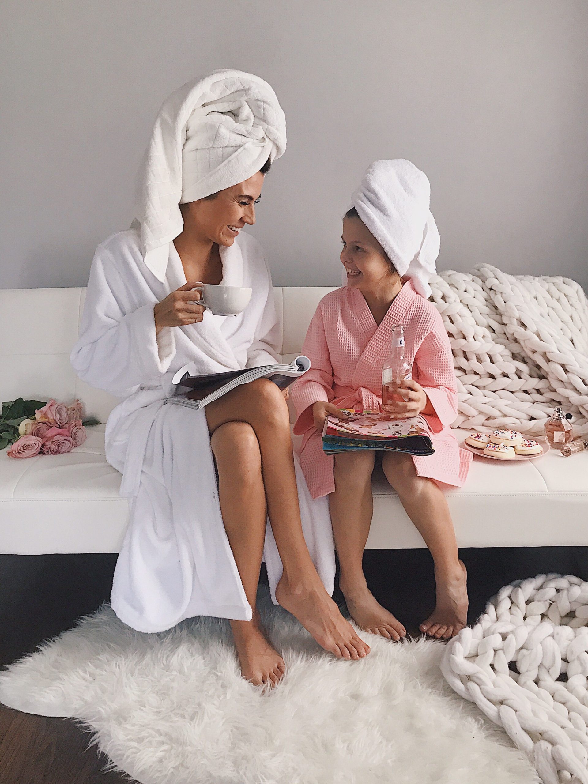 Have a spa day: Everybody could use some extra R&R right now, so make a day of it and have everyone participate in spa day! You can set out everyone’s robes (this one is my ultimate favorite; also love these cute striped options for the kids) and slippers and arrange multiple stations – a swimsuit bubble bath, fun face masks, a foot massage station – I can’t promise it won’t make a mess but I can promise it will make a great memory!