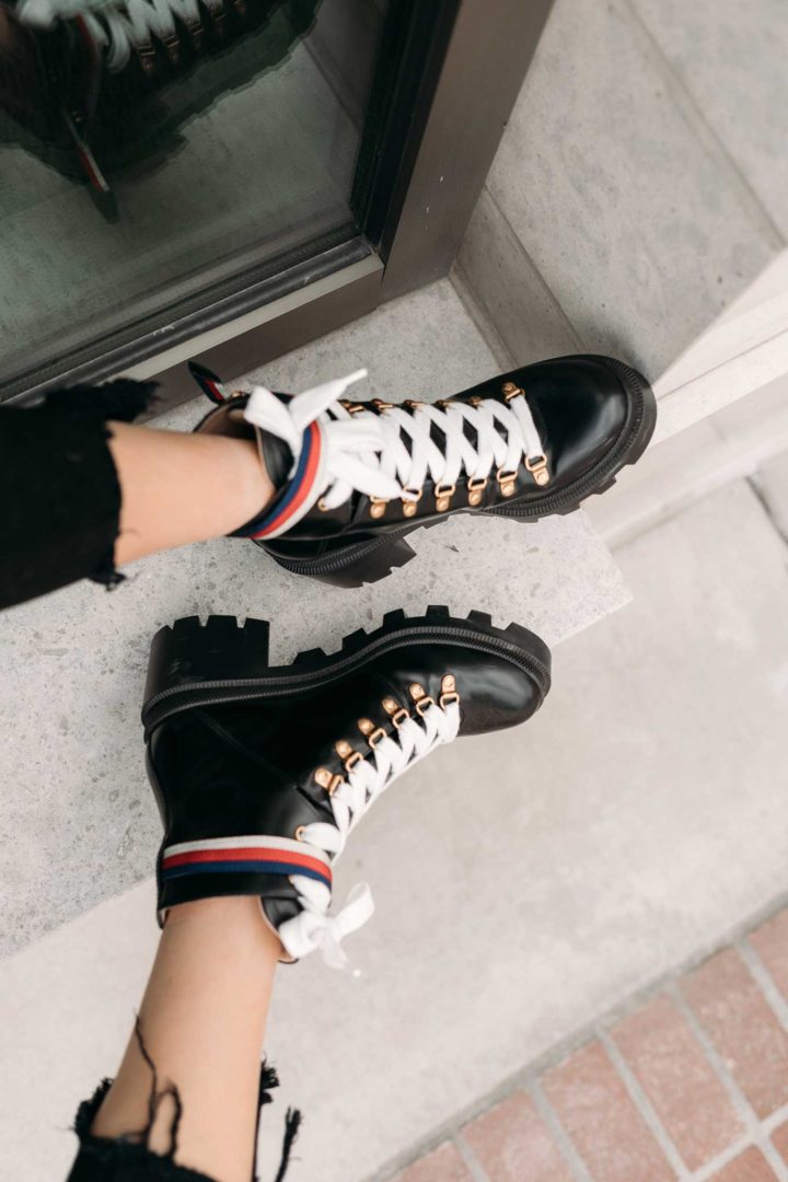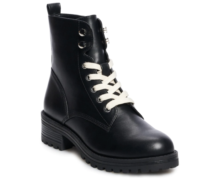 Combat boots! They are the biggest trend in boots right now – so big that they are overflowing into spring and summer looks. You can transition them into spring with a mini skirt and cropped tee, with your joggers, or with a tailored cropped trouser. The possibilities are endless! Here are a few options to bring an edgy vibe to your closet.