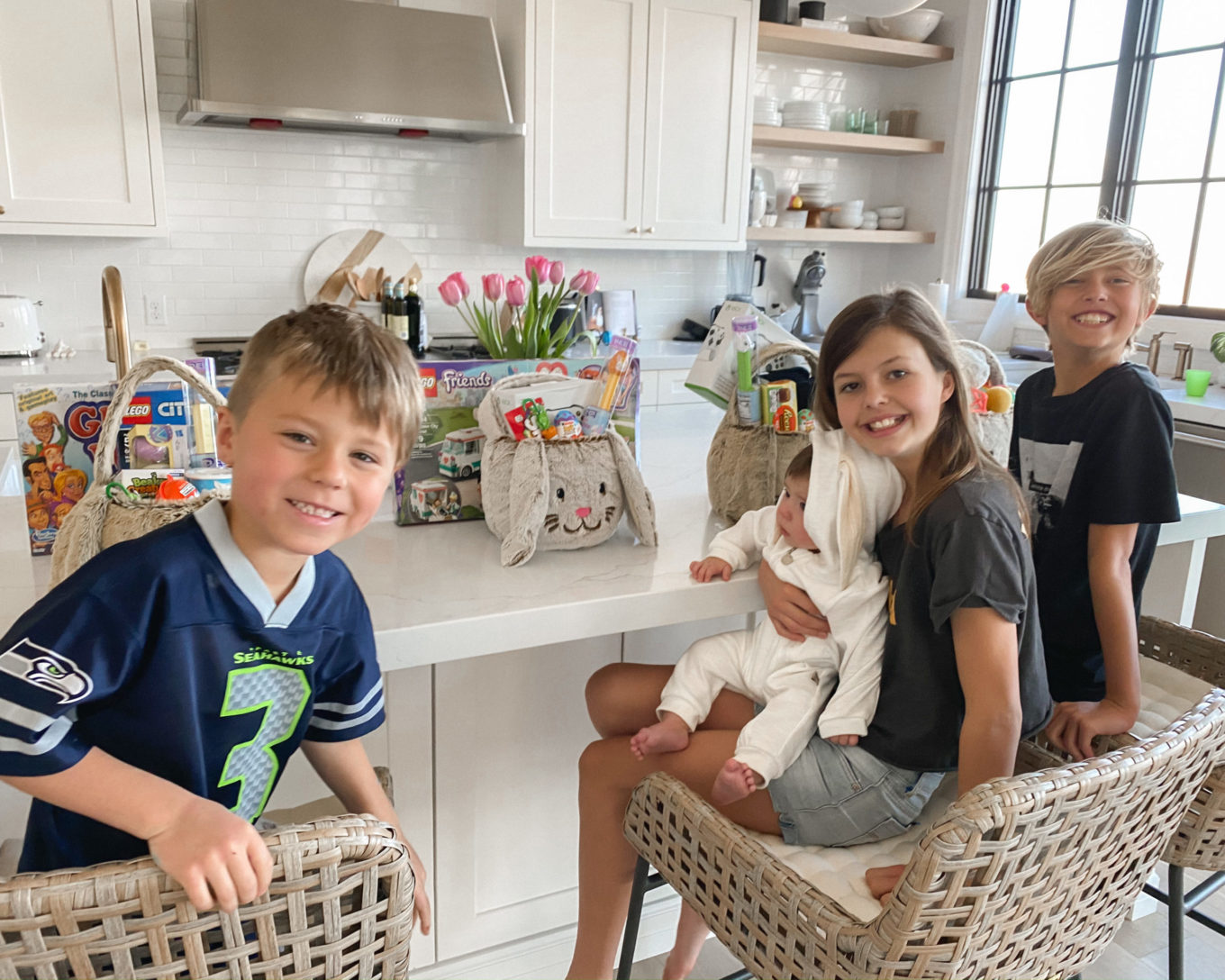 Hey guys! Wanted to do an Easter recap. The day just flew by so fast on Sunday I didn’t get a chance to put this together until yesterday. The kids all crowded around Ollies crib and slept by him on the floor because they wanted to be by him for his “first Easter.” It was so sweet! Mara told me later that Beckam kept waking up asking if he could go try and catch the Easter bunny so Ollie kept waking up hearing B talk haha I don’t think anyone got much sleep 😉 We did an Easter egg hunt, and I printed some church actives and Cody and I streamed church from home. We all got dressed up and it still felt like Easter, honestly I kind of liked it a little more because we weren’t running around everywhere 🙂