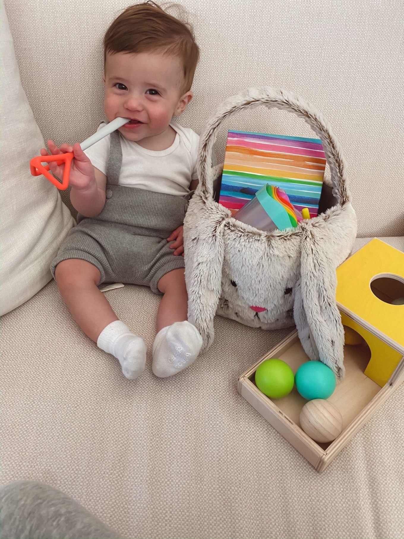 I love seeing the boys dressed up in matching suits on Easter! Found this one to fit Wes and this one for B’s size. Even when they are in matching suits, they still make it their own by opting for white sneakers and their own undershirt. (Love this floral patterned button down Wes chose – such a cool print to make a suit more his own style!) With a white button down like Beckam, you can add a little pocket square to add some more color. Ollie wore the overalls Beckam wore on his first Easter – I didn’t save a ton of B’s clothes but it makes me so happy seeing him in some of the special ones ❤️ Here’s a pic of B on his first Easter and Ollie on his 😍