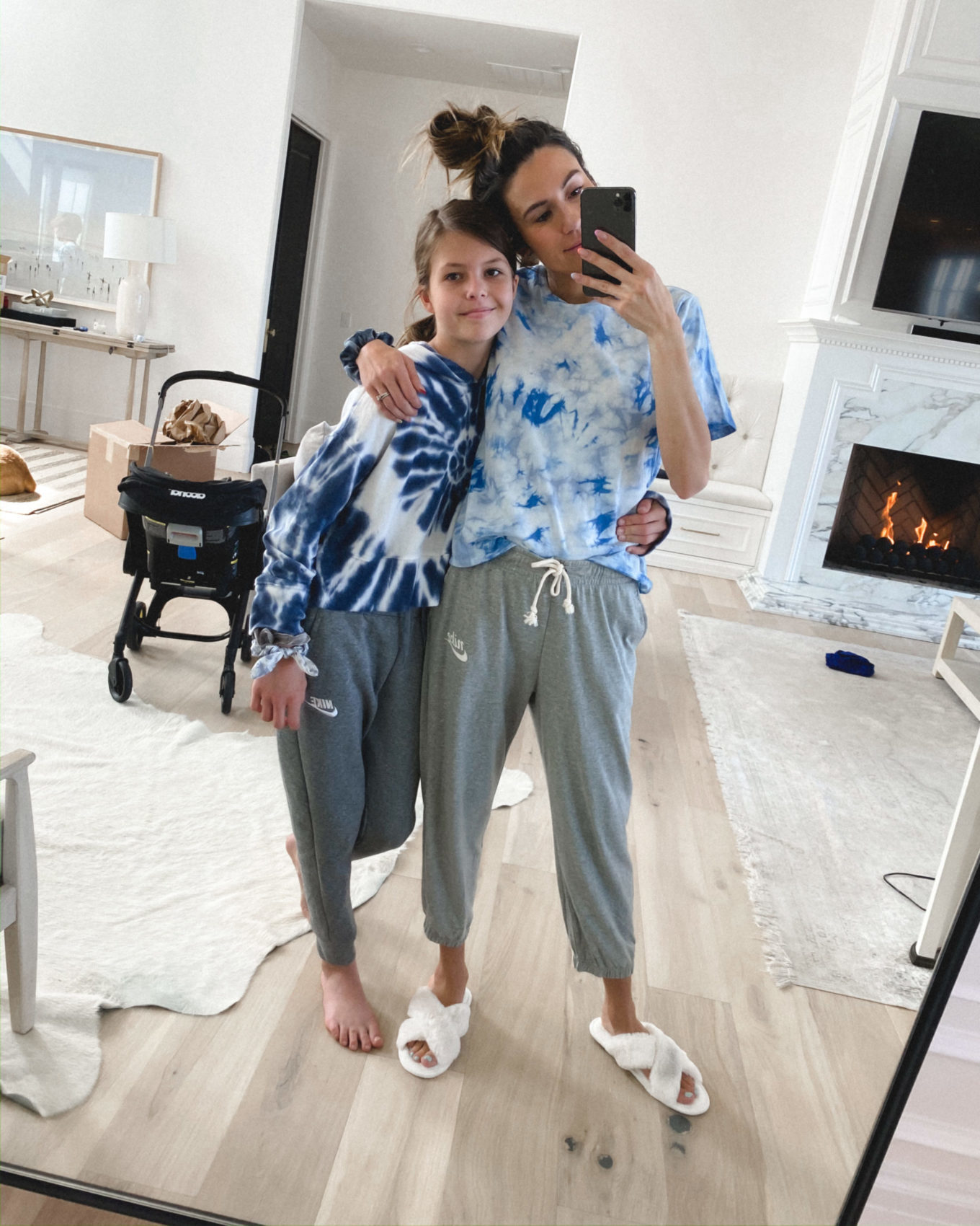 Outfits of the day aren’t the same these days 😜 Even with everything else seeming to slow down, the kids are growing faster than ever. I feel like they have outgrown so much of their clothes,   I picked out some loungewear sale pieces to stock up on while they were on sale. (Especially with loungewear, it’s easer to size up for a loose, comfy fit so they can usually get more wear out of it than with other clothes.) Mara and I have been going all out with the tie-dye haha. I’m obsessed with this sweatshirt we got for her (wishing they had it in my size!). Got this this tee for me! It comes in 4 colors (I have it in this light blue and black/navy – so good!) and it’s on sale right now for under $20. Also you have seen these slippers on repeat lately – on sale under $20 and comes in multiple colors, I got the grey and pink too.