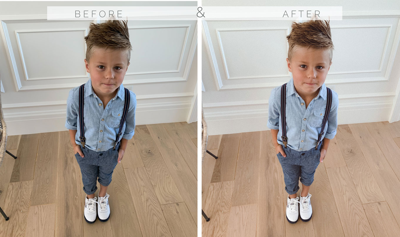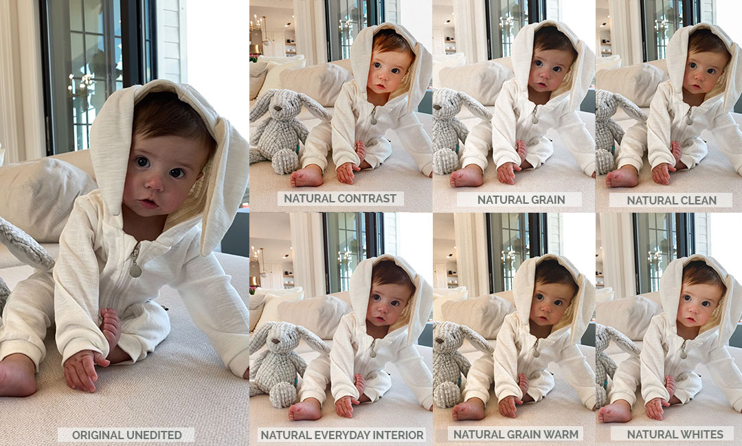 Happy Friday guys!! With so much home content lately, I’ve started to edit my photos pretty true to color and natural. Some of you guys have been asking about the new edit – so I just released my ‘Natural’ preset collection. They are perfect for those pictures that just need a slight edit – a little brighter, a touch warmer, etc. It’s a pack of 6 different edits that have been my go-to presets lately, so you have plenty of options to get the perfect, natural-feeling edit for any of your pictures. The photo above of Ollie in his bunny outfit is all the presets on the same photo just copy and pasted (no tweaks) so you can see how they look. Then below I wanted to share a side-by-side of the same shot with some of the presets.