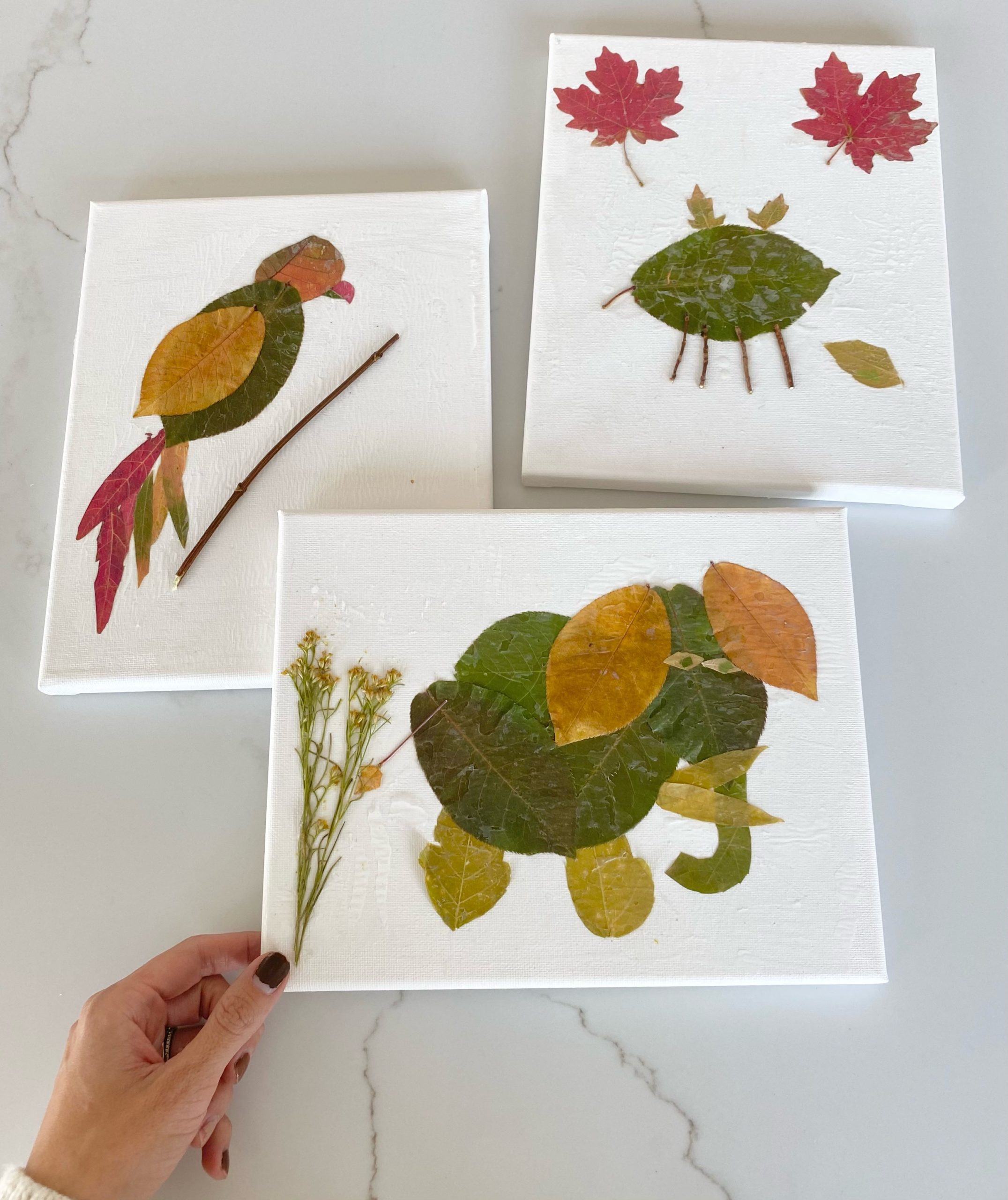 • Leaf Animals. If you guys caught my stories this weekend, the kids collected pretty leaves from our hike to make a craft of little leaf animals. They all turned out sooooo cute! Mara made an elephant, Wes a parrot, and Beckam a bug. They make the perfect decor for fall and also a sentimental keepsake as the kids grow up.
