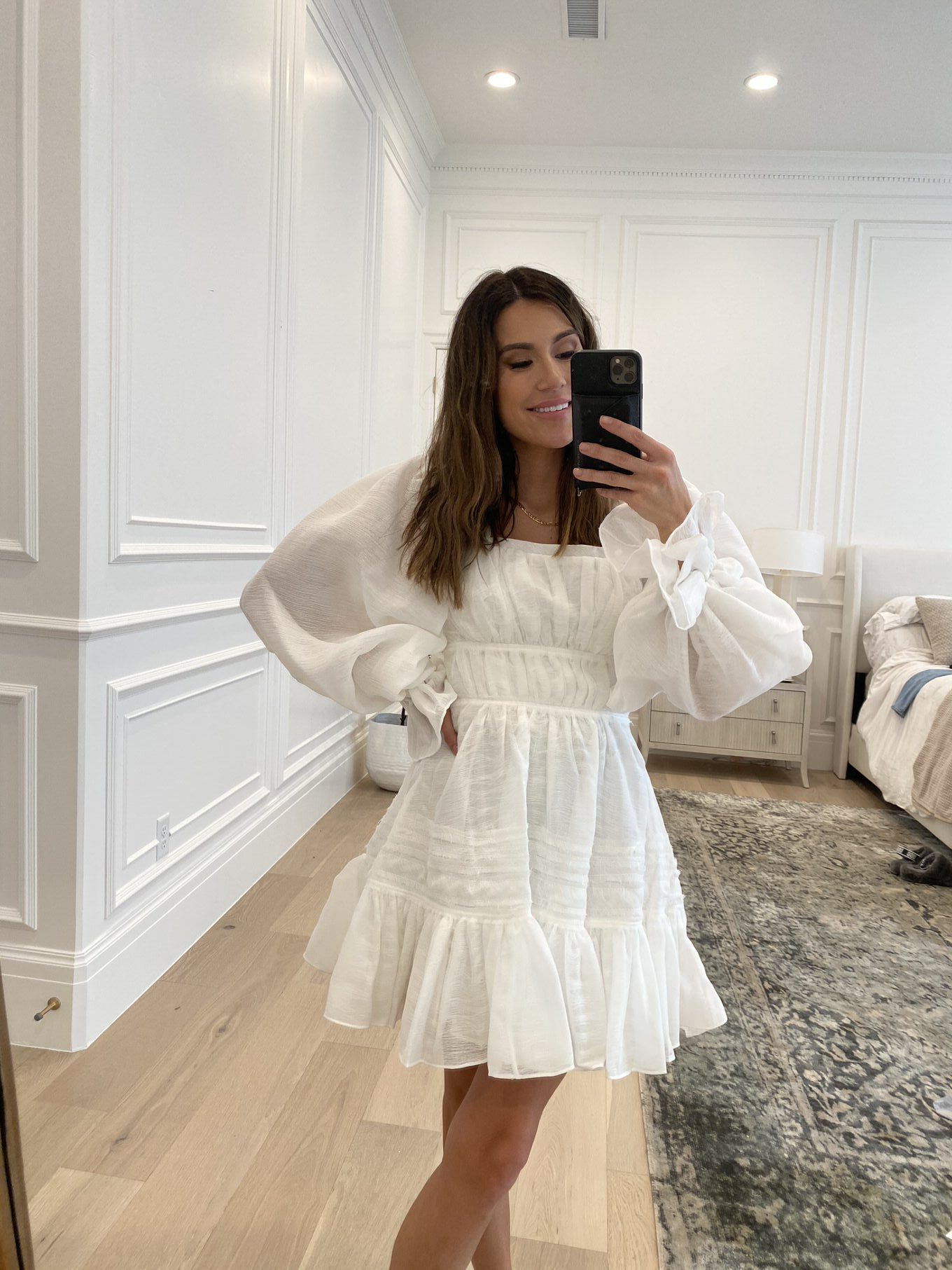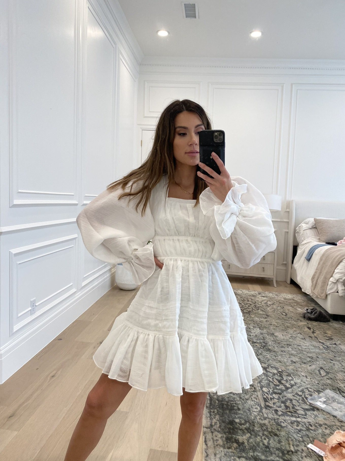 DETAILS: WHITE FULL-SLEEVE DRESS (WEARING SIZE 6)