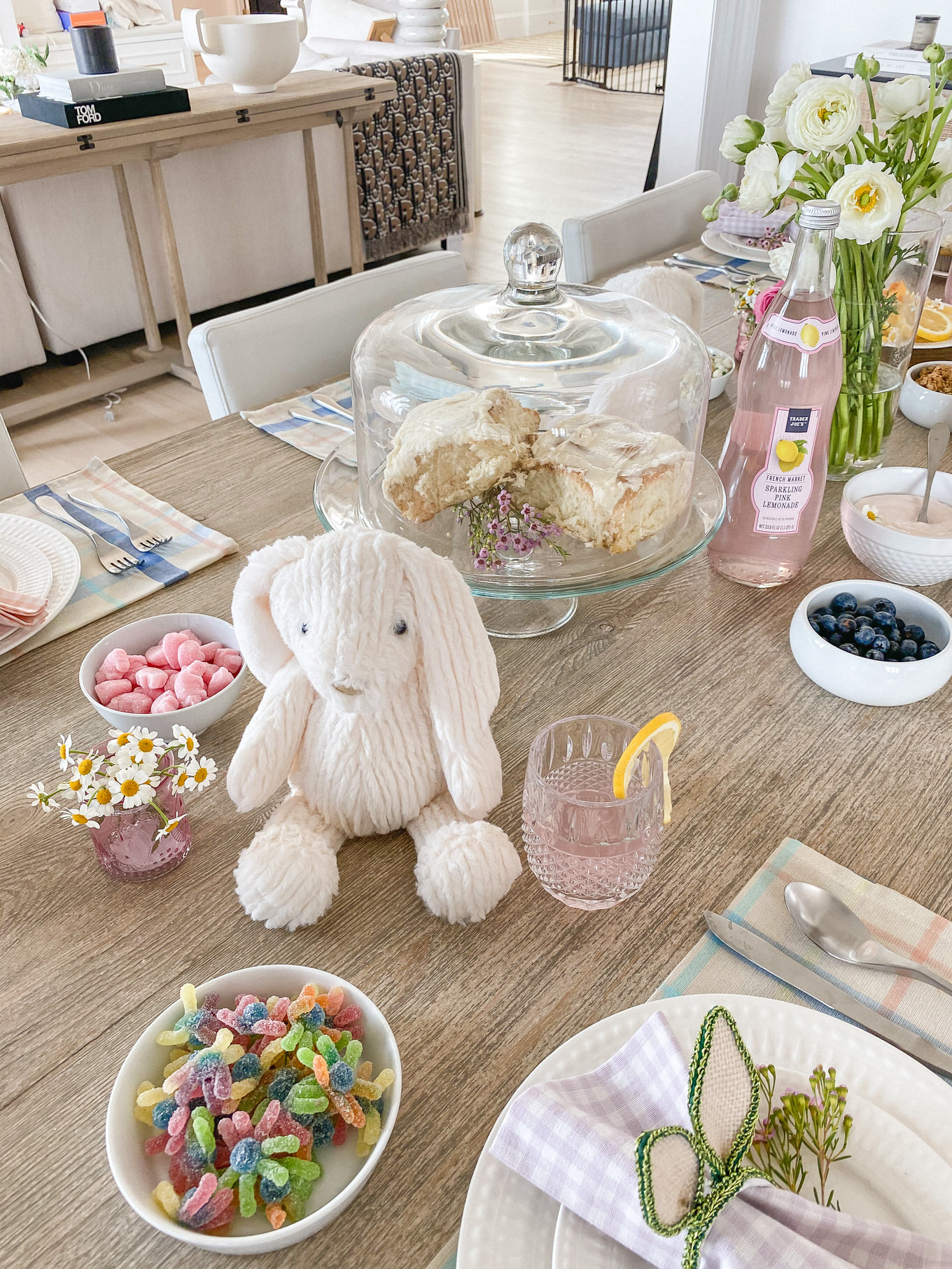 EASTER DECOR: PLAID NAPKIN SET (ON SALE UNDER $10) | PLUSH BUNNY (UNDER $20) | BUNNY EARS NAPKIN RING (ON SALE UNDER $15) | GINGHAM NAPKIN SET (ON SALE UNDER $15) | CANDY SET (CAREFUL WITH THE CUPCAKE BITES – THEY ARE ADDICTING!)